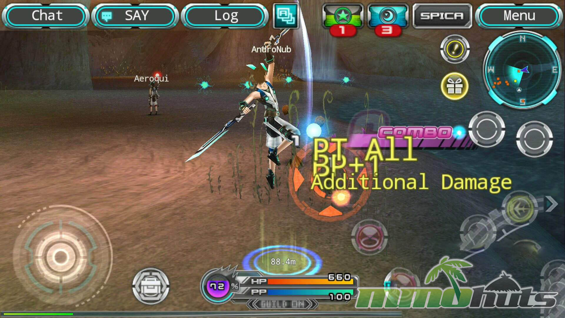 For a 2015 mobile MMORPG, Stellacept’s graphics are one of its biggest strengths. It combines sleek UI elements and high-tech equipment designs with environments that often lean classic fantasy, including green fields, trees, and familiar creature silhouettes. That contrast is central to the game’s identity and keeps areas from feeling visually monotonous.