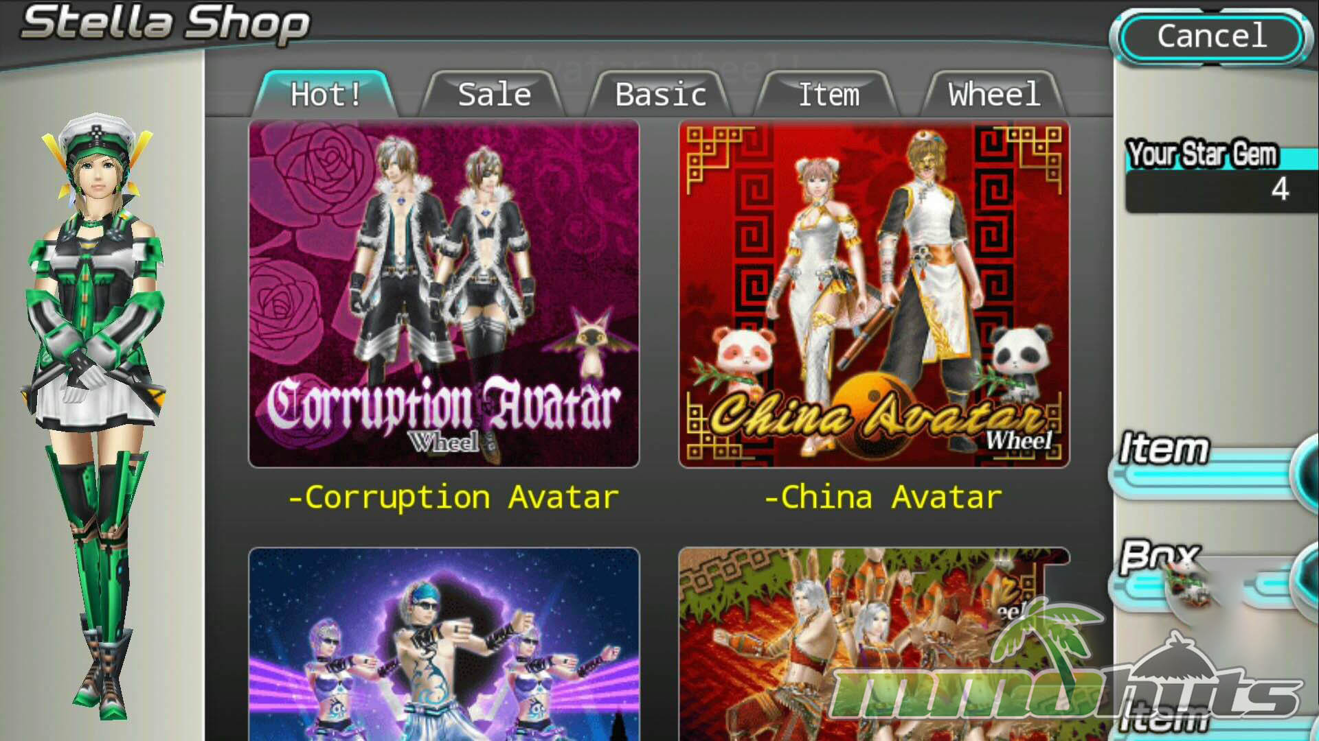 Stellacept’s monetization follows the familiar Asobimo approach: optional, generally non-mandatory, and focused on convenience and cosmetics. The most visible purchases are Avatar items, costume pieces that change your look without affecting performance. These are typically obtained through a randomized wheel system that can award different outfit parts and color variations, so it is not a direct “buy exactly what you want” storefront.