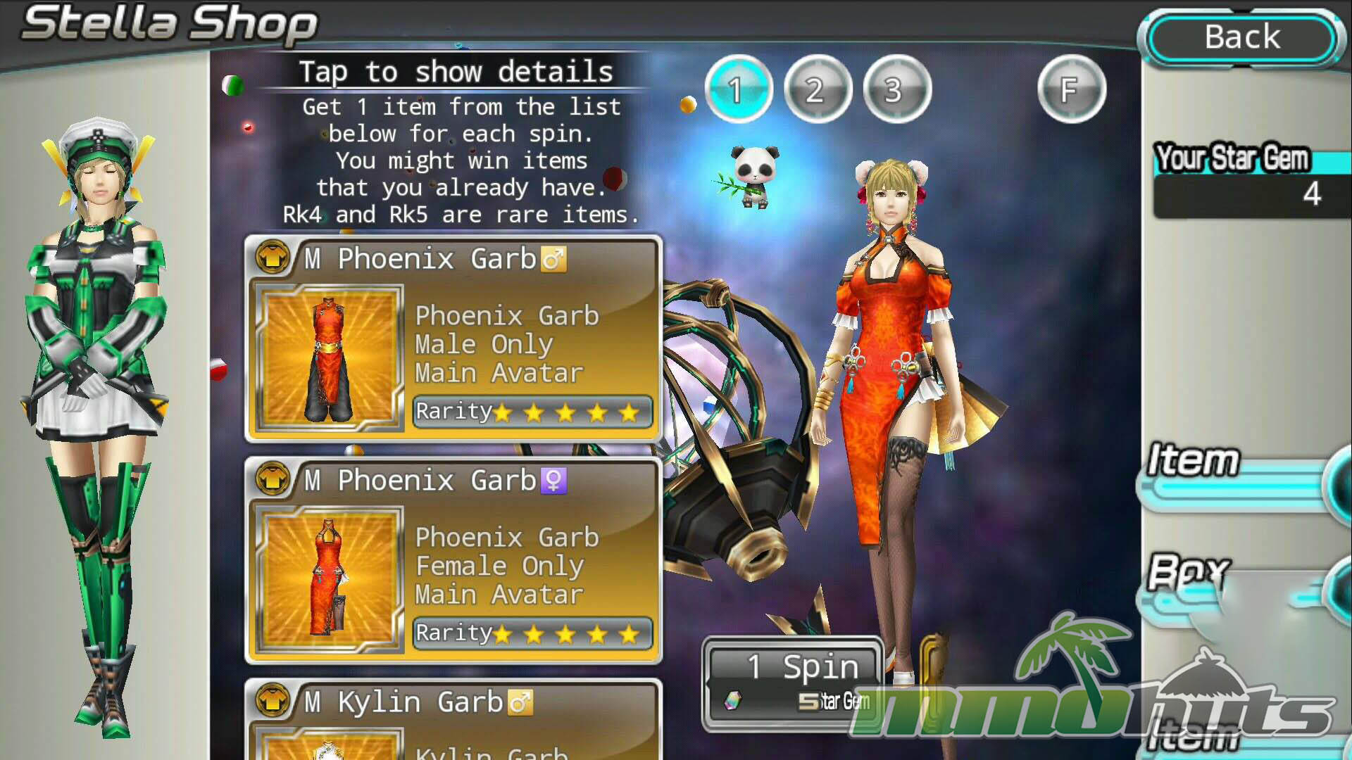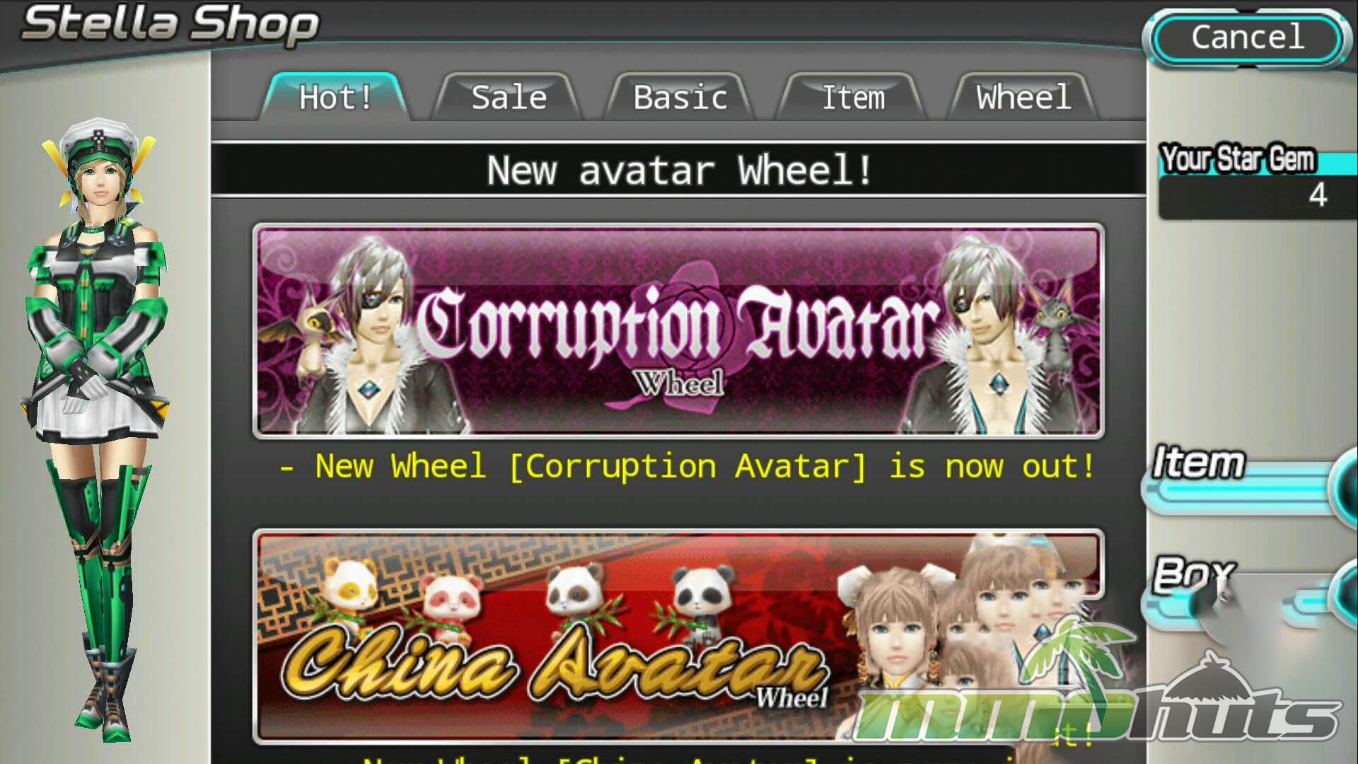 Stellacept’s monetization follows the familiar Asobimo approach: optional, generally non-mandatory, and focused on convenience and cosmetics. The most visible purchases are Avatar items, costume pieces that change your look without affecting performance. These are typically obtained through a randomized wheel system that can award different outfit parts and color variations, so it is not a direct “buy exactly what you want” storefront.