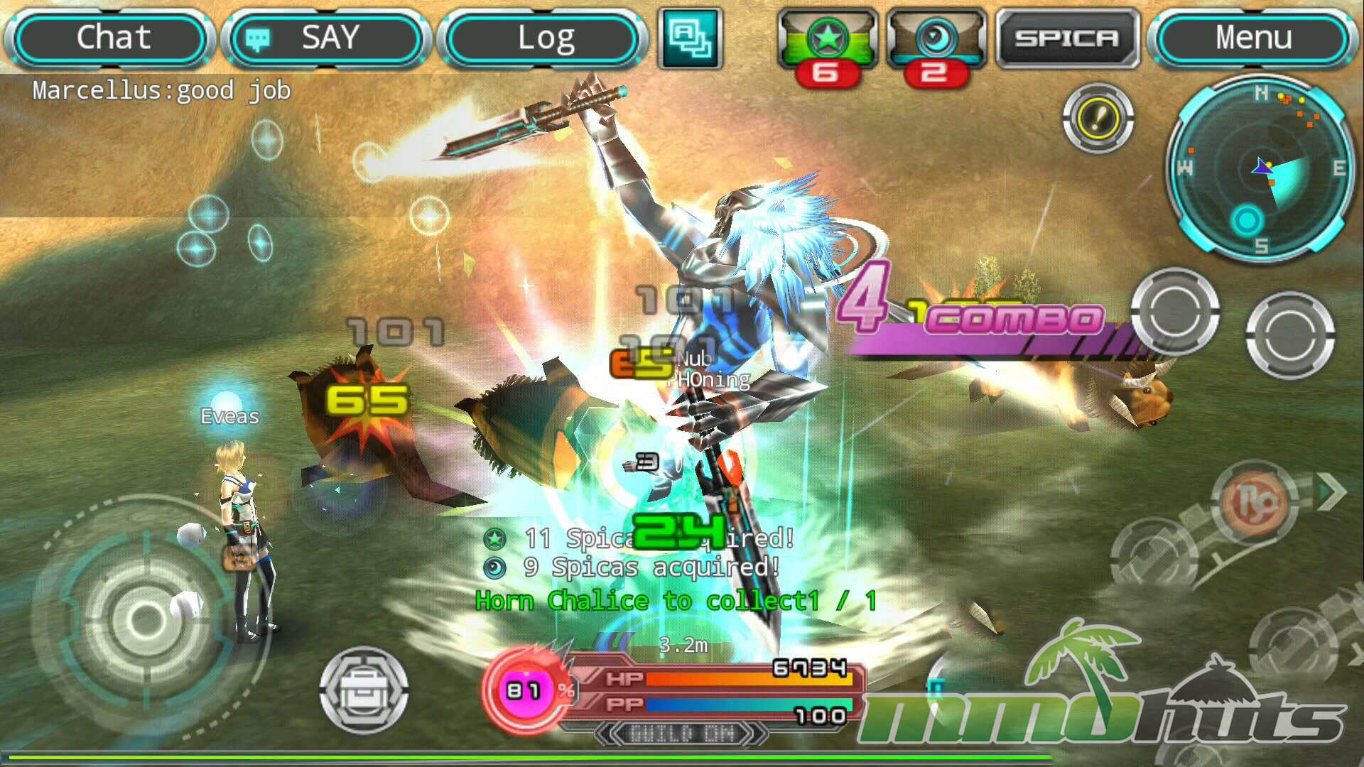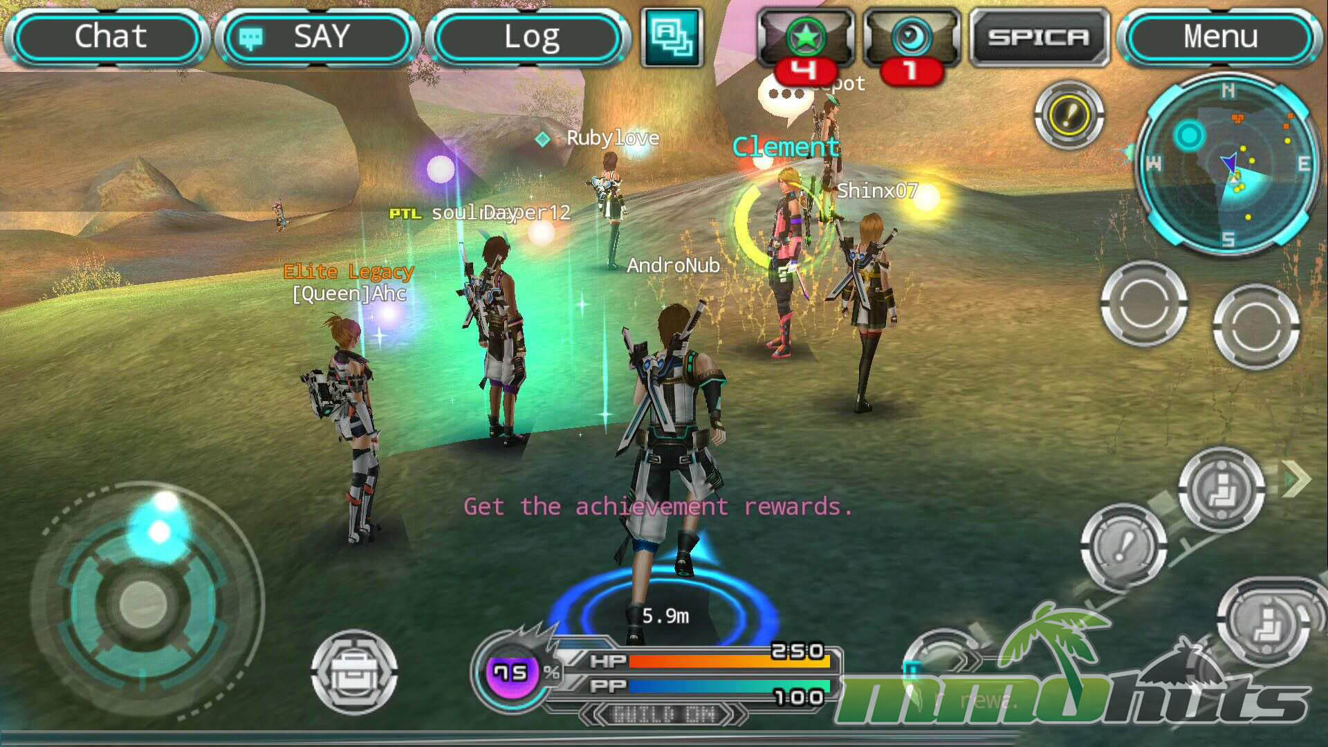 For a 2015 mobile MMORPG, Stellacept’s graphics are one of its biggest strengths. It combines sleek UI elements and high-tech equipment designs with environments that often lean classic fantasy, including green fields, trees, and familiar creature silhouettes. That contrast is central to the game’s identity and keeps areas from feeling visually monotonous.