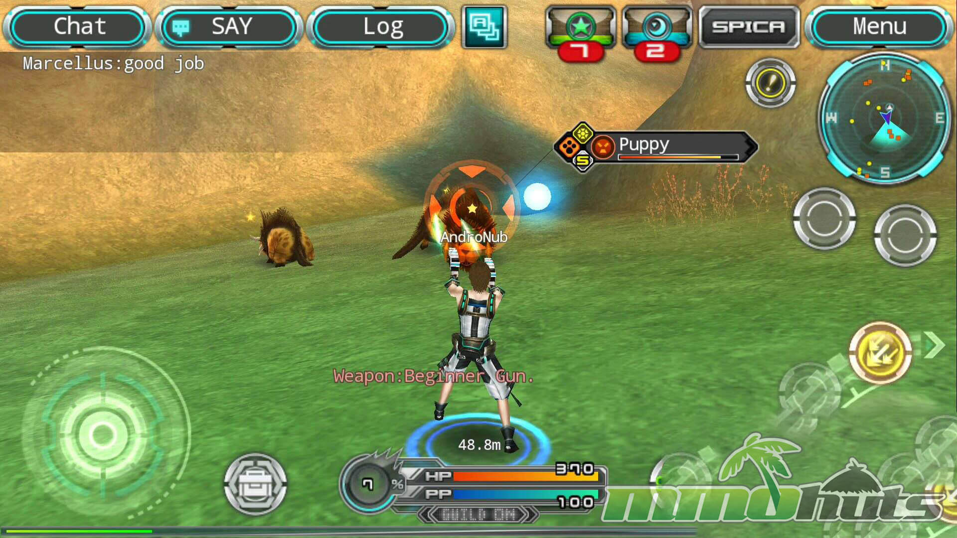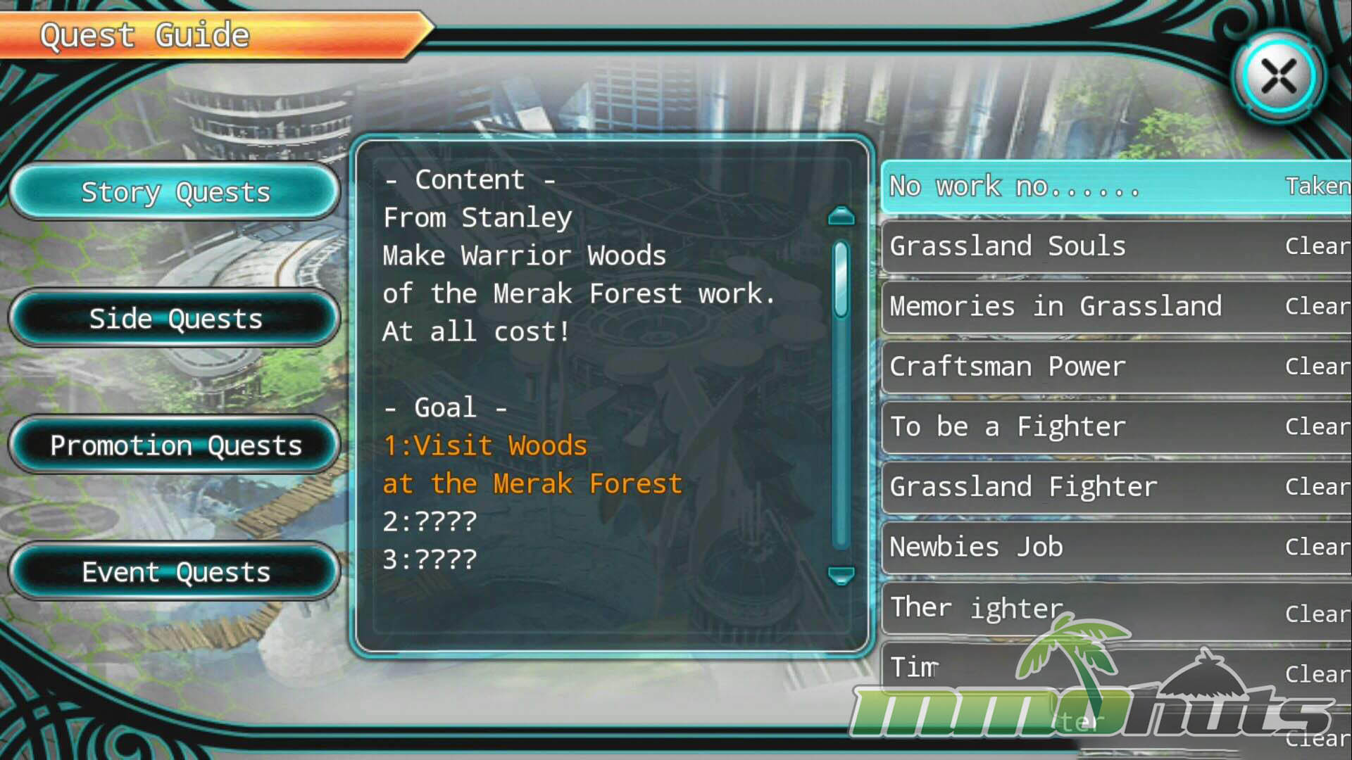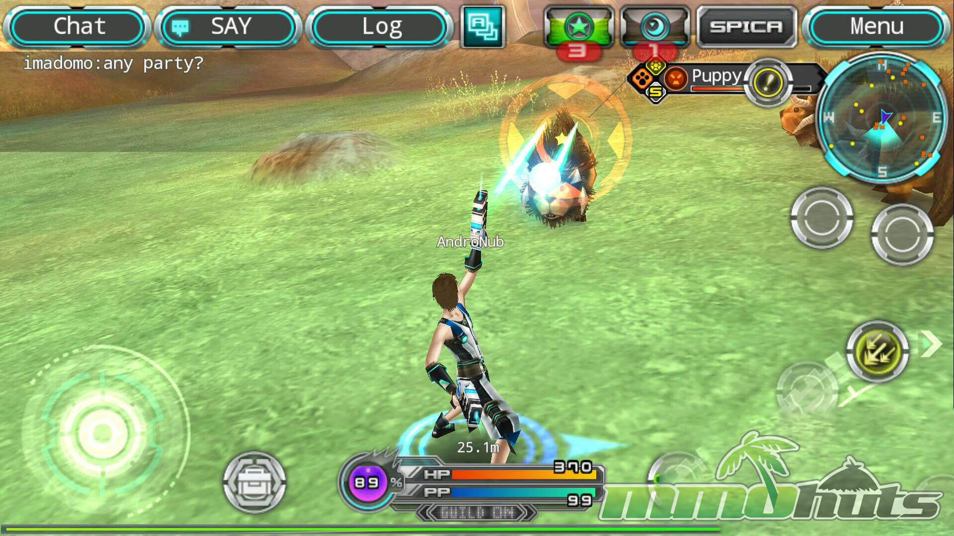 For a 2015 mobile MMORPG, Stellacept’s graphics are one of its biggest strengths. It combines sleek UI elements and high-tech equipment designs with environments that often lean classic fantasy, including green fields, trees, and familiar creature silhouettes. That contrast is central to the game’s identity and keeps areas from feeling visually monotonous.