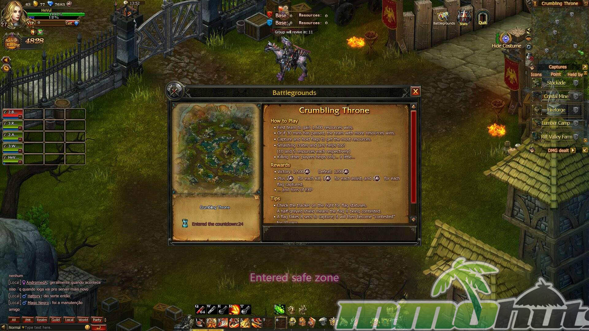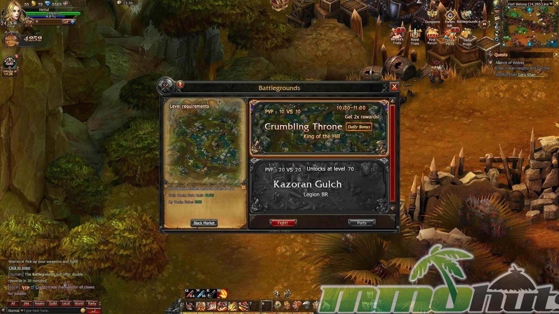 PvP provides its own reward loop, including gear access and PvP-specific currency for the Black Market. Early PvP begins with Battlegrounds, objective-based instanced maps that strongly resemble the battleground formula popularized by older theme-park MMOs. Crumbling Throne is a King of the Hill style mode, asking teams to capture and hold points to secure victory.