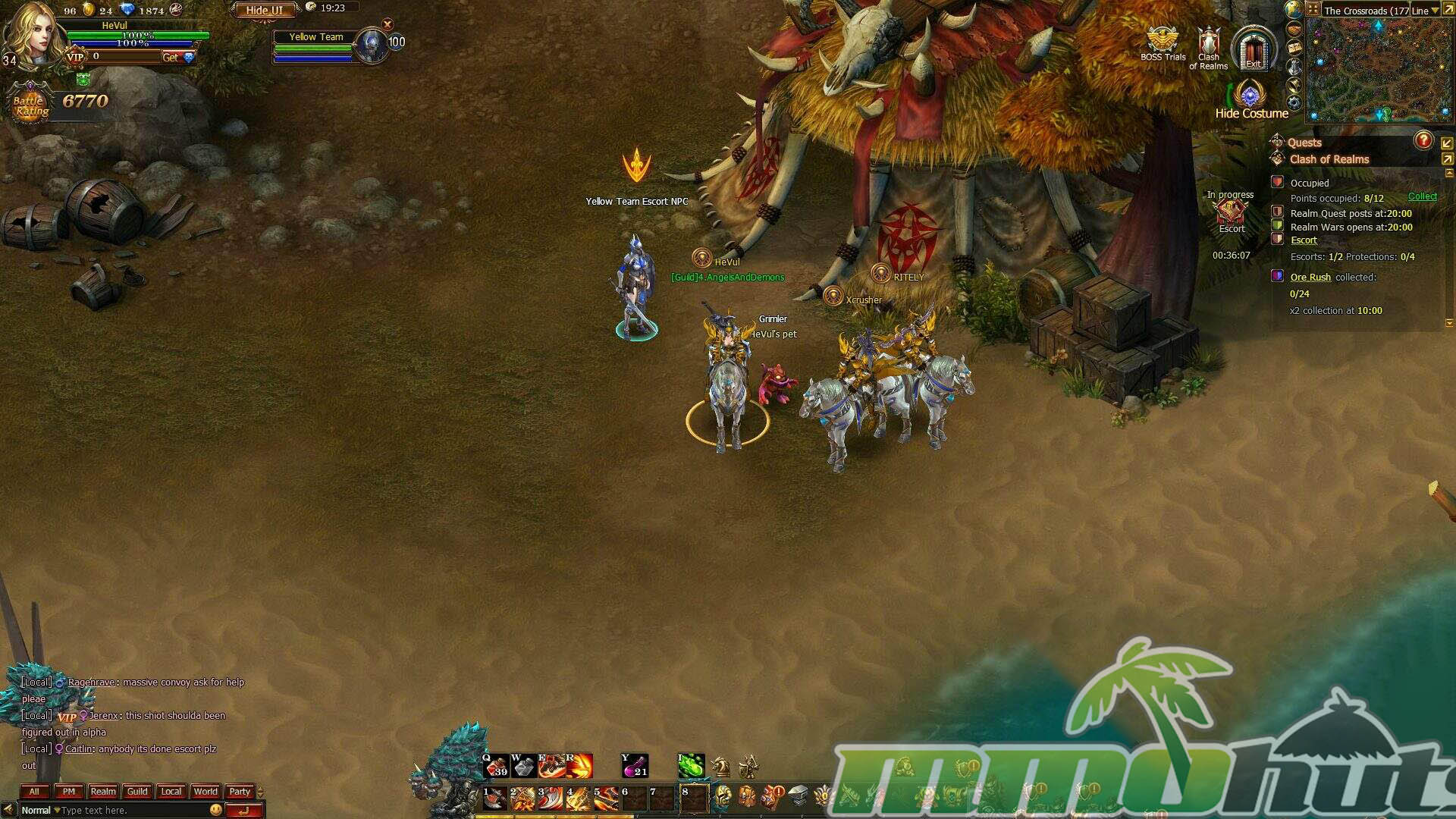 Because both auto-pathing and AFK combat accelerate the basic loop, the game is comfortable being played in the background. It is common to leave your character handling routine tasks while you wait for instanced content or timed events. Cross-server events also interrupt the routine throughout the day via on-screen prompts. One example is the Escort event on a cross-server map, where players summon convoys, defend them across the zone, and compete against both NPC threats and other players. Participation scaling encourages group activity, since more involvement typically means better payout.
