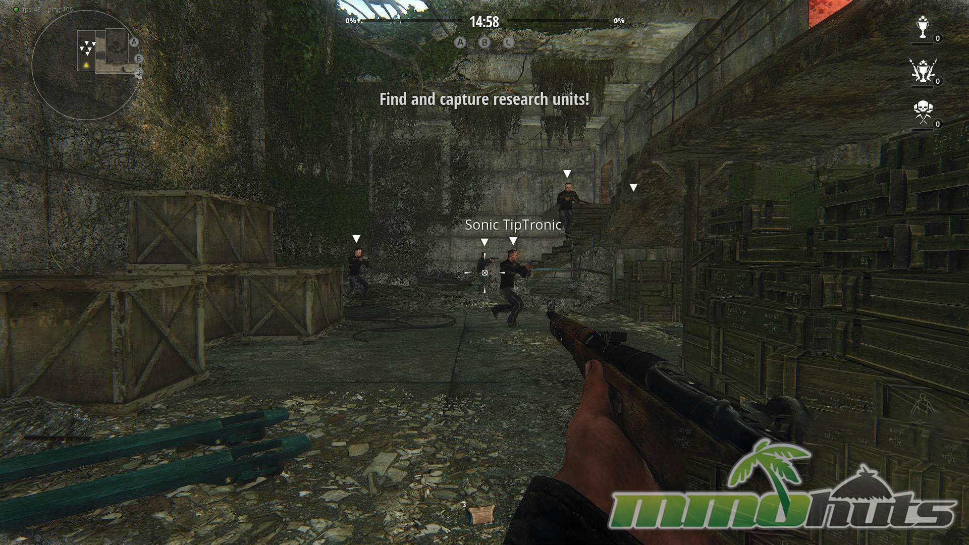 Survarium offers three match types: Team Deathmatch, Battery Retrieval, and Research. Team Deathmatch is the cleanest expression of the game’s strengths, compact maps, quick trades, and a constant need to watch angles. Battery Retrieval adds an item-running objective, while Research plays like an objective control variant that tries to push teams into set locations.