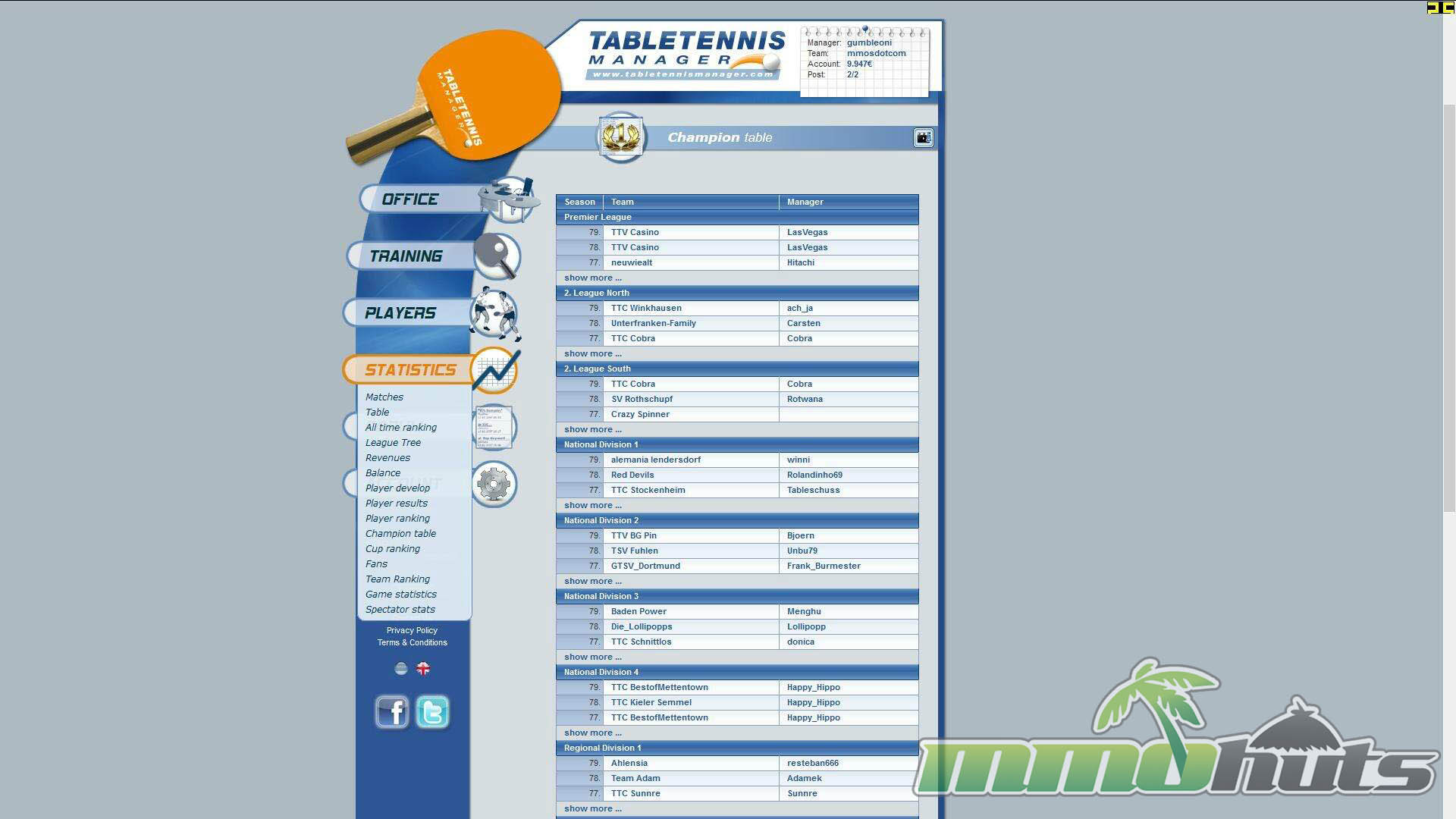 Table Tennis Manager is a browser-based MMORPG and will run smoothly on most PCs, as it is Flash-based. Any modern web browser should run the game smoothly.
