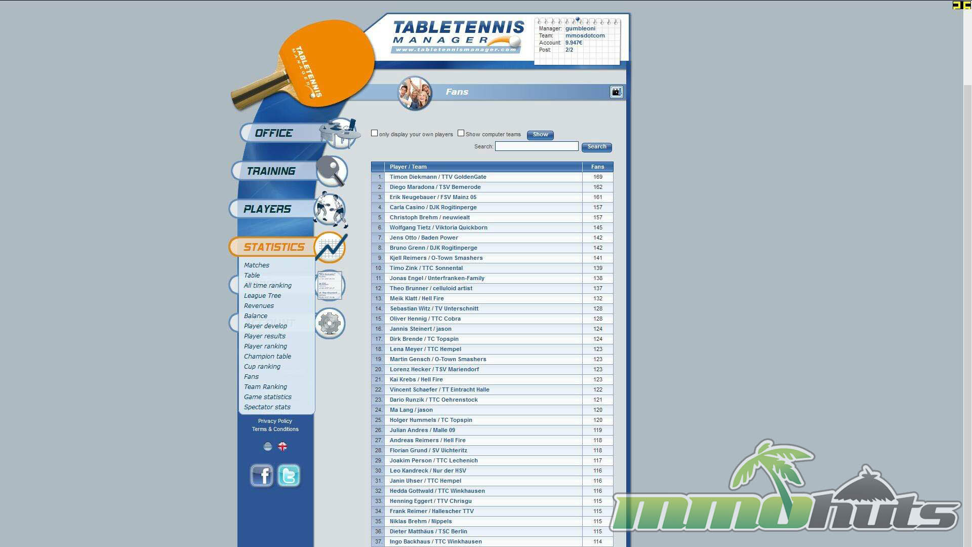 Table Tennis Manager is a browser-based MMORPG and will run smoothly on most PCs, as it is Flash-based. Any modern web browser should run the game smoothly.