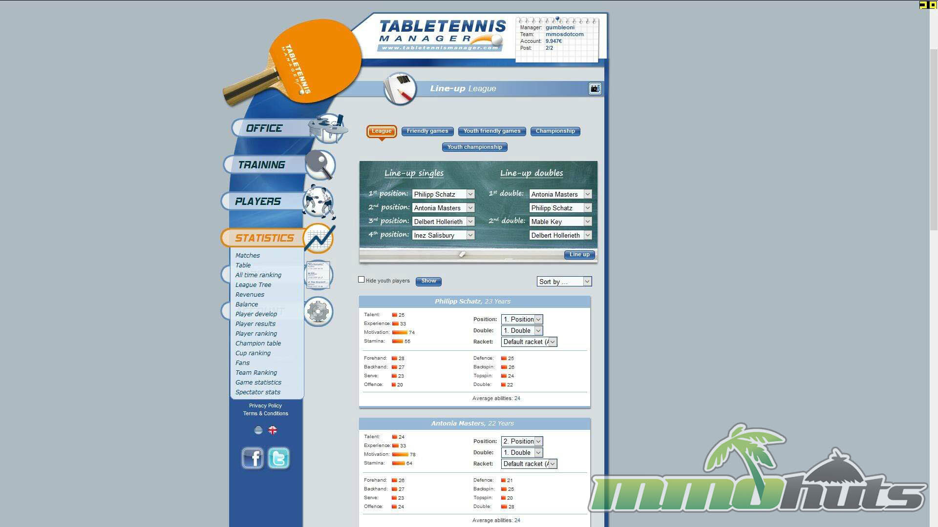 Table Tennis Manager is a management-focused browser game where you run every important part of a table tennis team. Your day-to-day play revolves around making smart roster decisions and keeping the books in order, because progress is tied just as much to financial discipline as it is to athletic development. You recruit and organize a lineup based on each player’s strengths, then build them up through training plans that emphasize attacking power, defensive stability, or a more rounded approach.