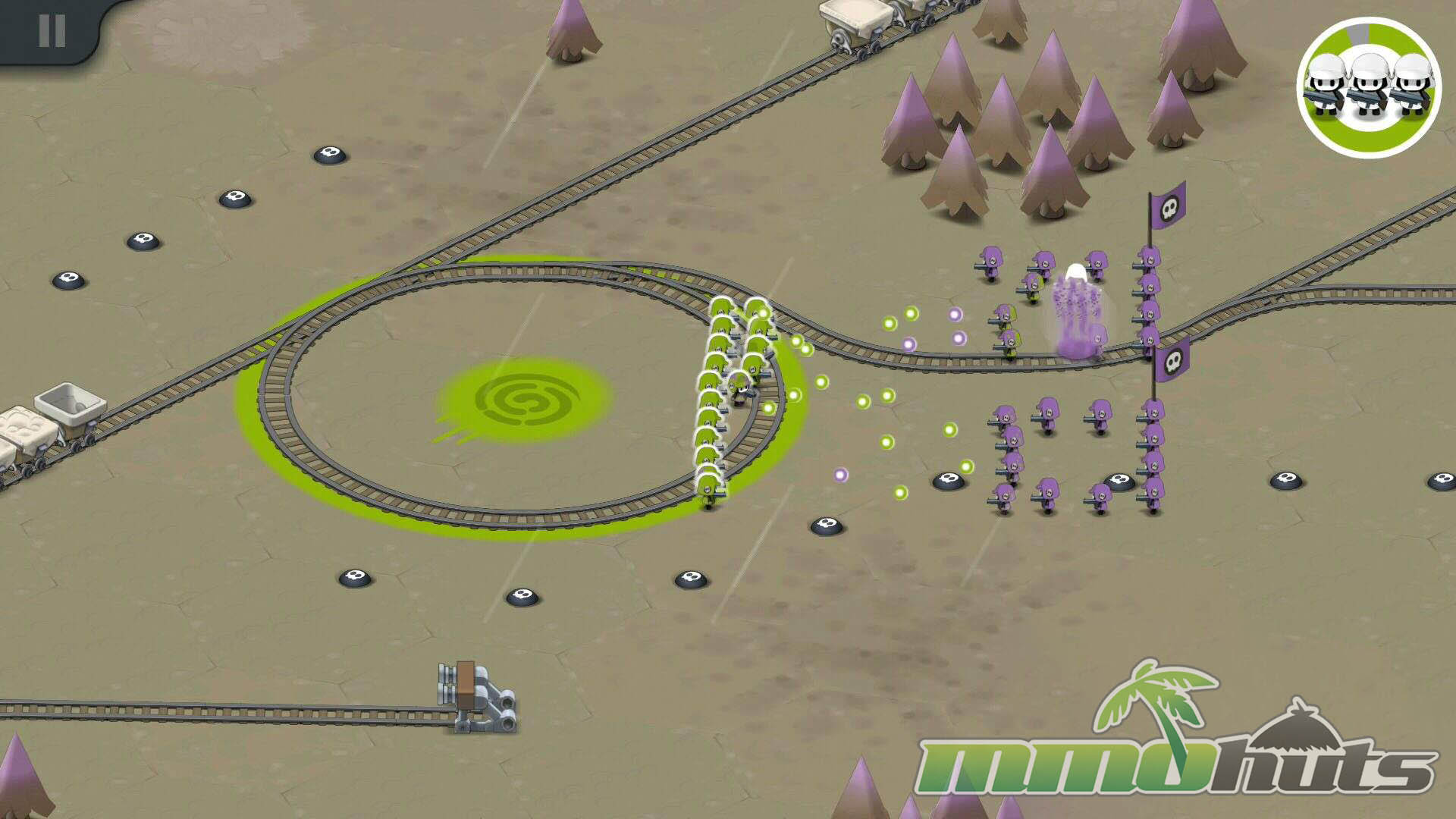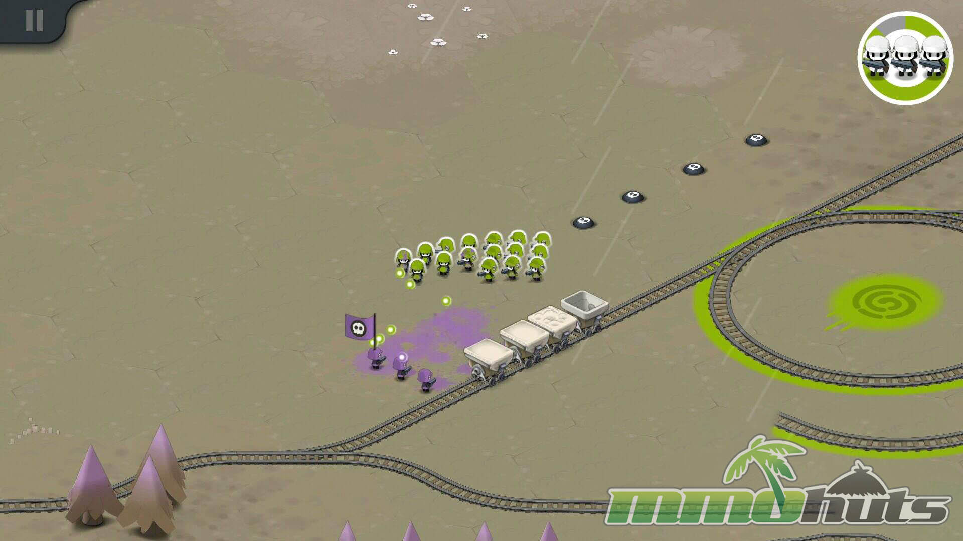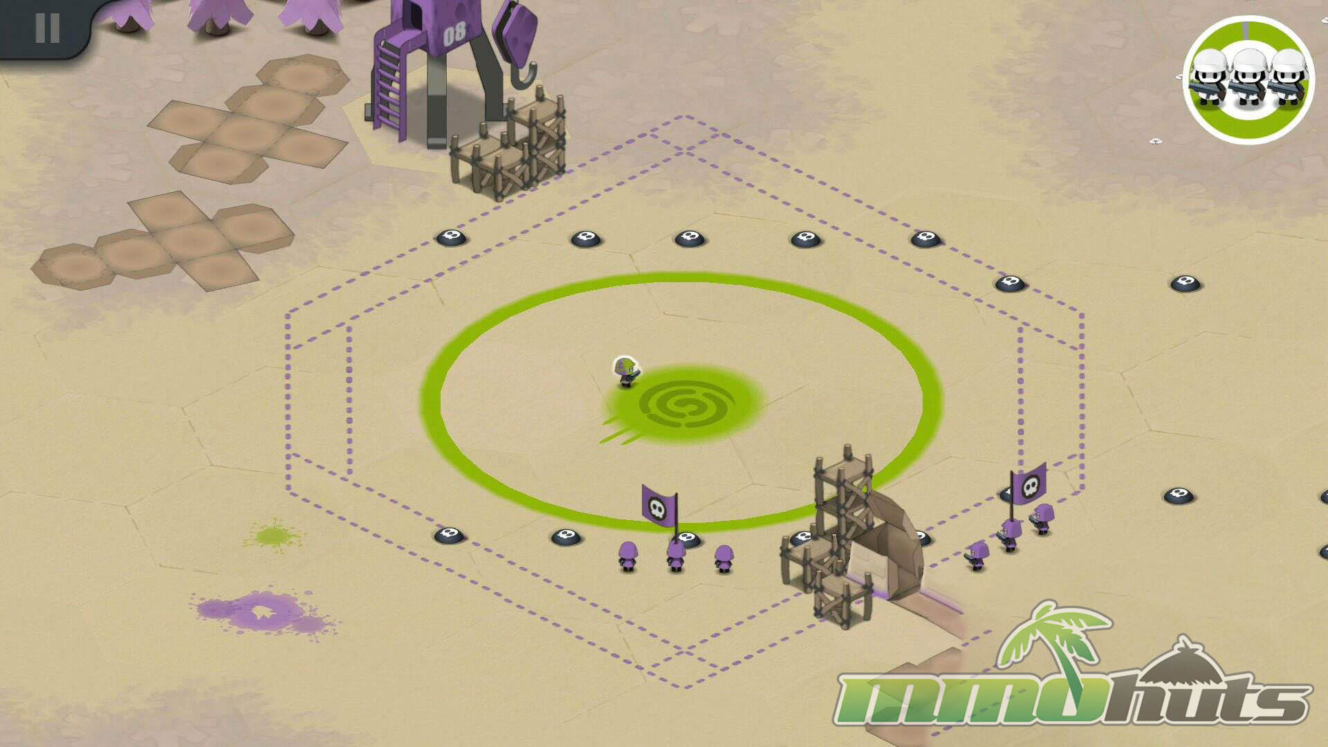 Once the raid begins, the game’s signature control scheme shows up. You tap to direct movement and you can draw shapes on the screen to reform your squad. Turning your units into a tight circle, a wider line, or a pointed arrow changes how they engage threats and how safely they move through choke points. It is an intuitive mechanic that works well on touch screens and gives you agency beyond “drop troops and hope.”