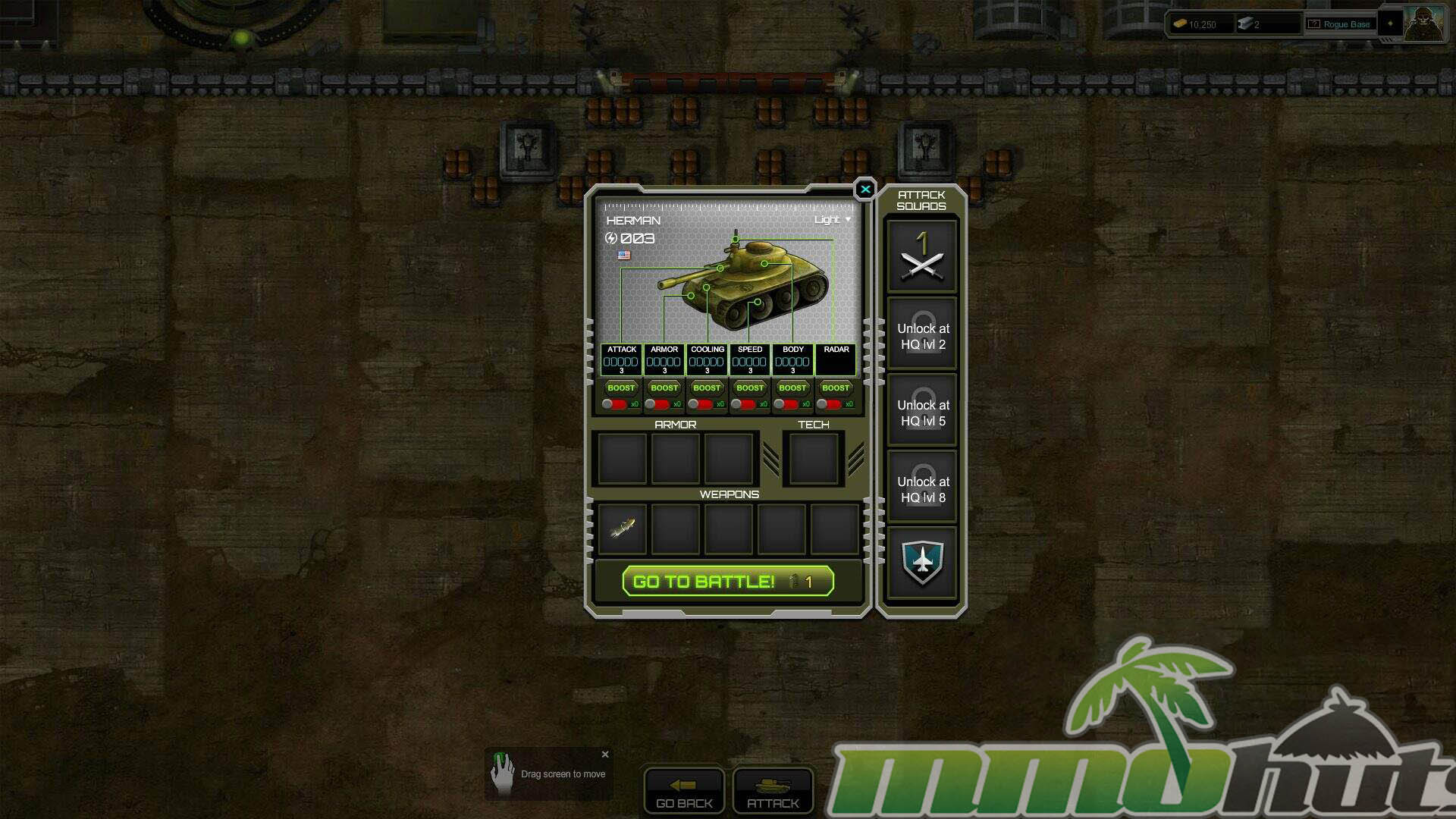 - Headquarters Progression and Defense – grow your base through upgrades and customization, turning it into a stronger resource engine that unlocks more technology, tanks, and production options.