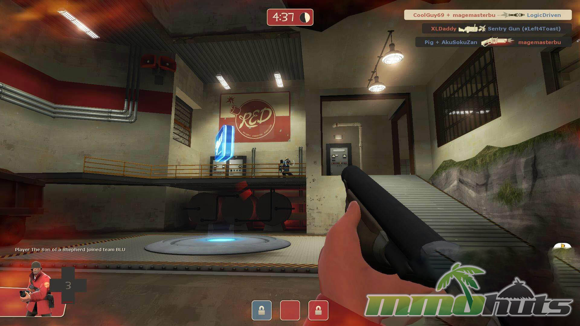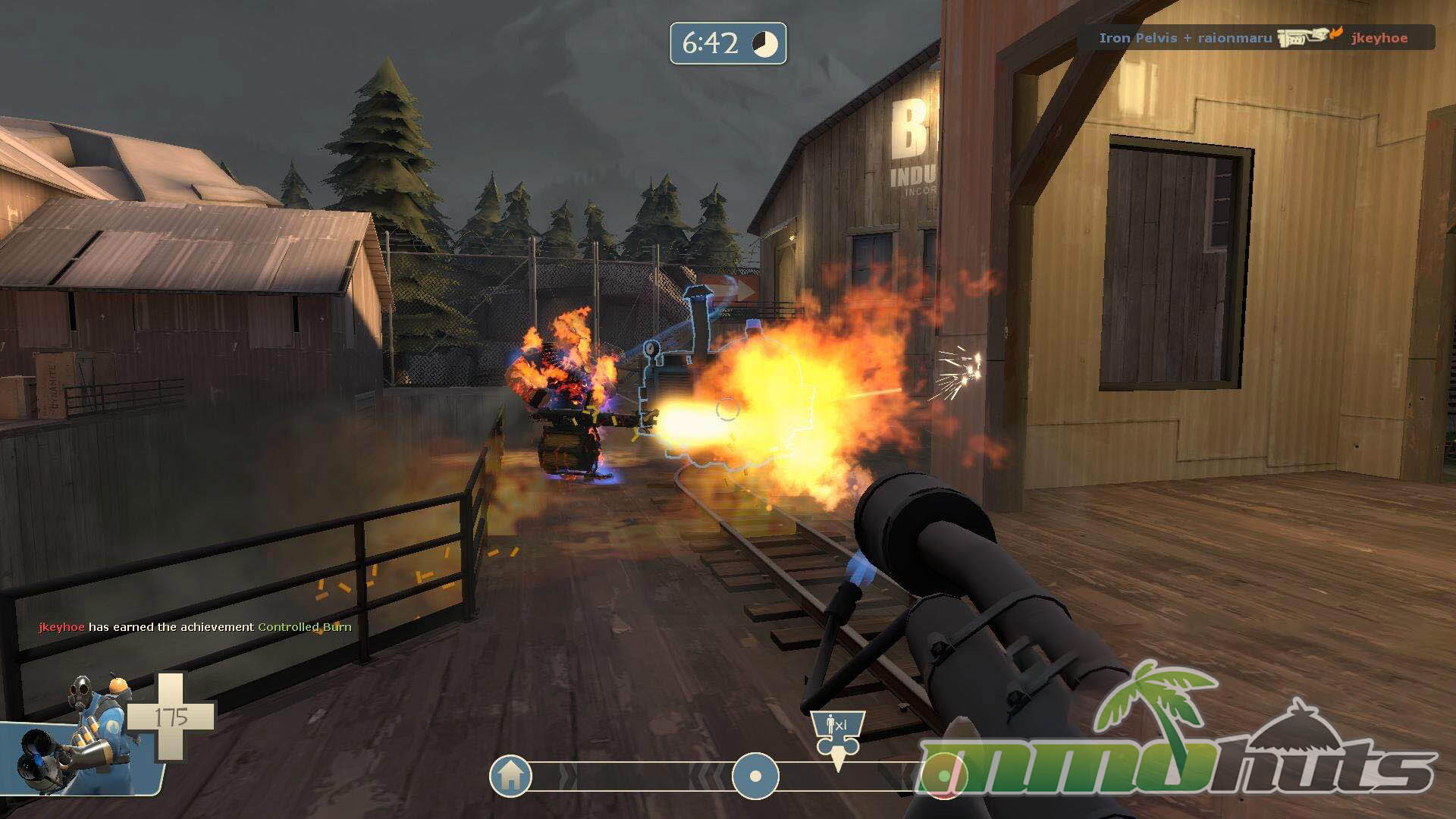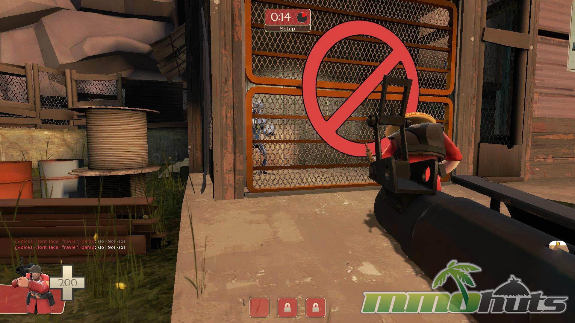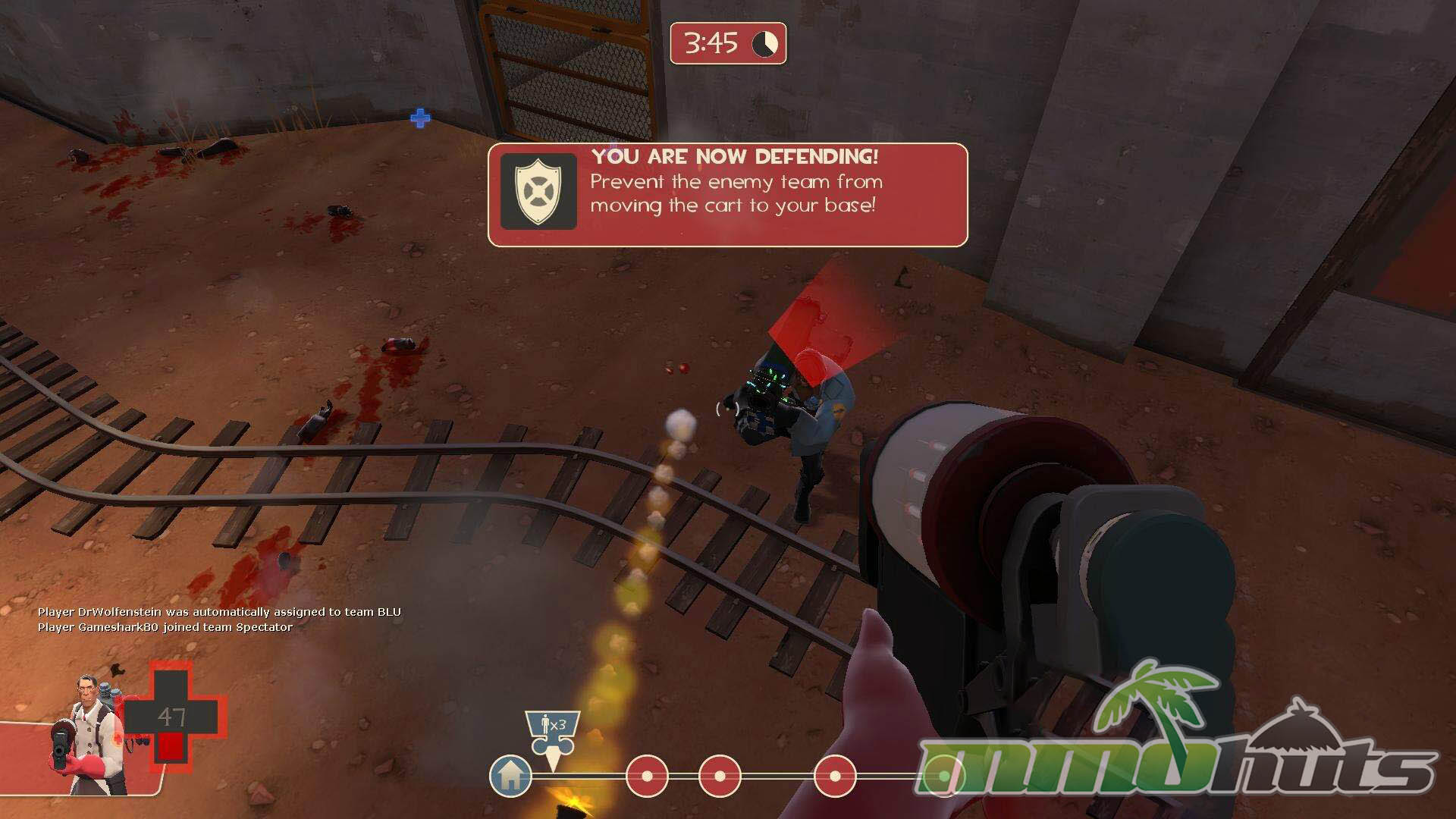 TF2 uses a matchmaking approach familiar to MMOFPS players, quickly placing you into objective matches with other players. The mode selection is broad and encourages different kinds of teamwork. Alongside classics like Capture the Flag and King of the Hill, there are objective formats that feel distinctly “TF2,” including Payload, where BLU escorts a bomb cart along tracks while RED tries to hold them back.