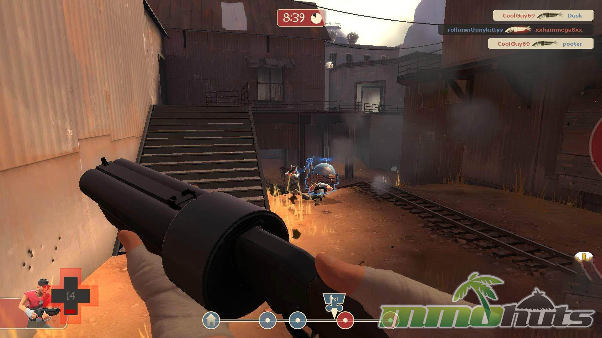 • Scout – a speedy skirmisher carrying a scattergun, pistol, and aluminum bat. Scouts can double jump, and they capture points and push payloads at twice the normal rate. They are the frailest class in terms of health.