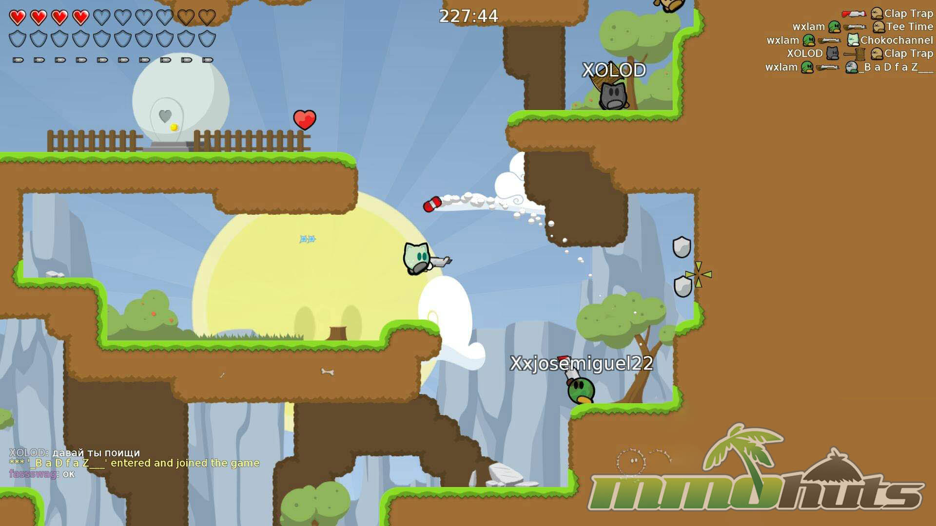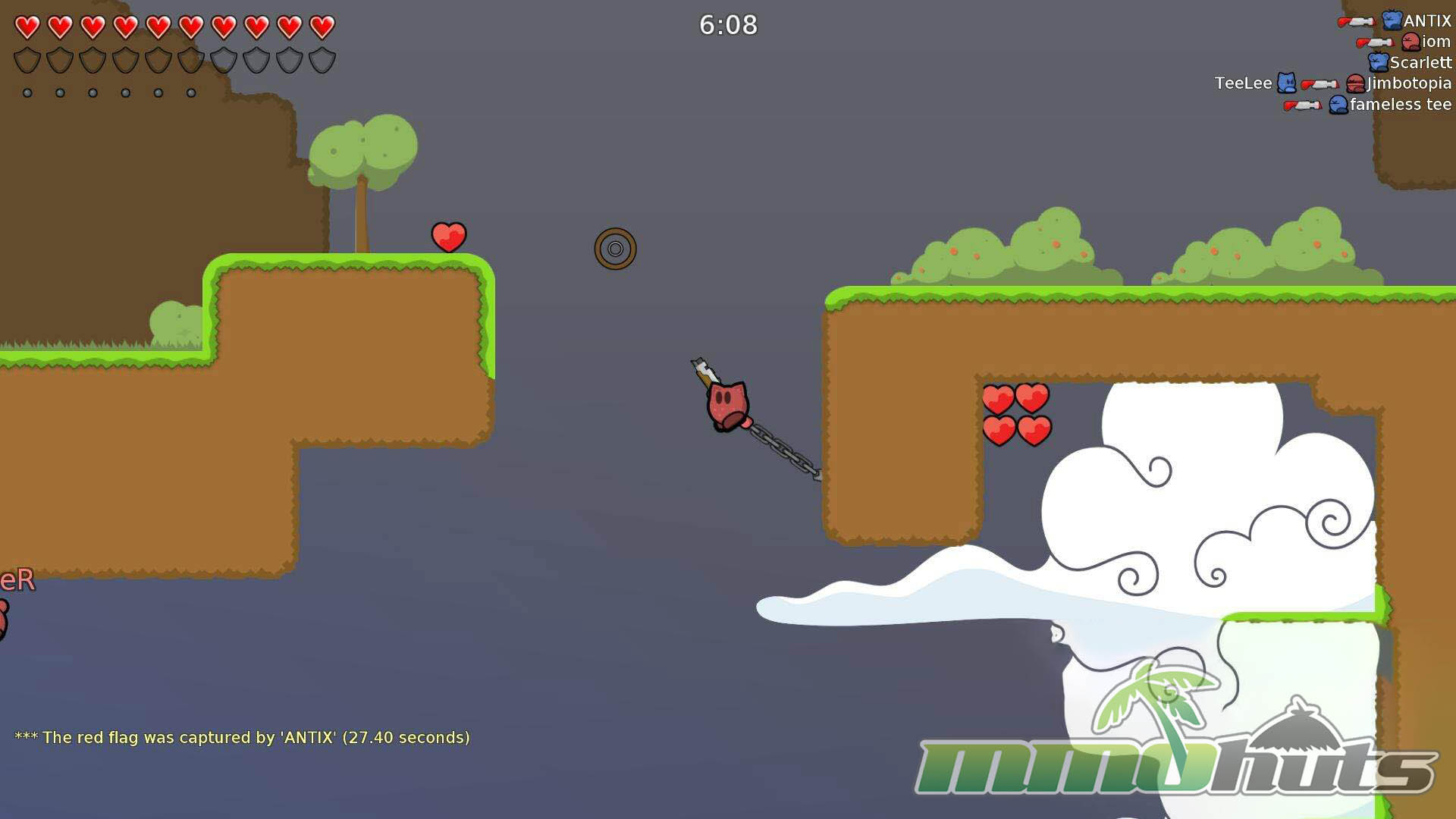 Teeworlds takes the familiar look of old-school platformers and drops it into a multiplayer arena format where movement matters as much as aim. You control a tiny “Tee” character in matches that support up to 16 players, and the pace is immediate: double-jumps, air-strafing, and the grappling hook let good players reposition instantly, escape pressure, or set up clever flag runs.