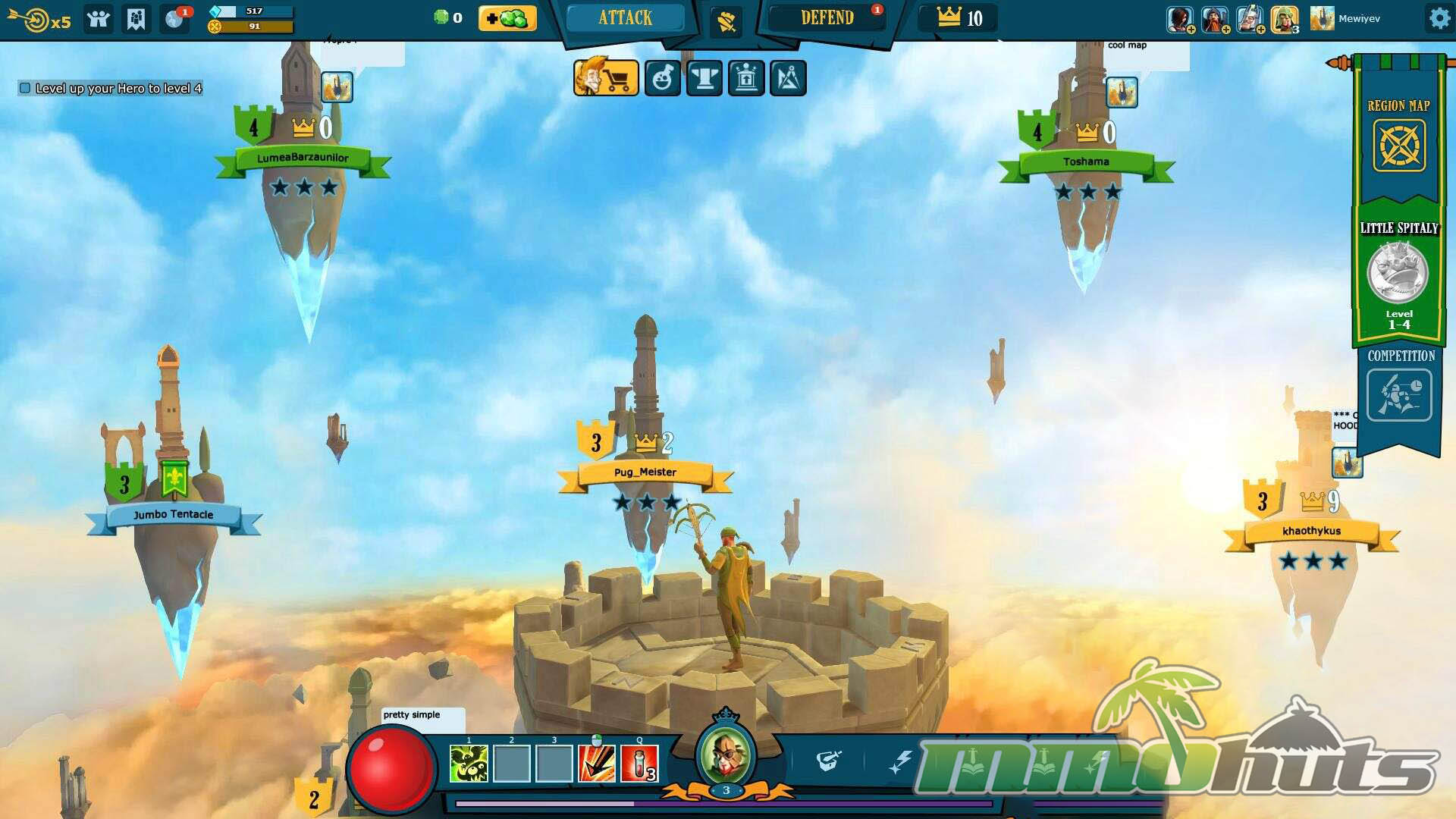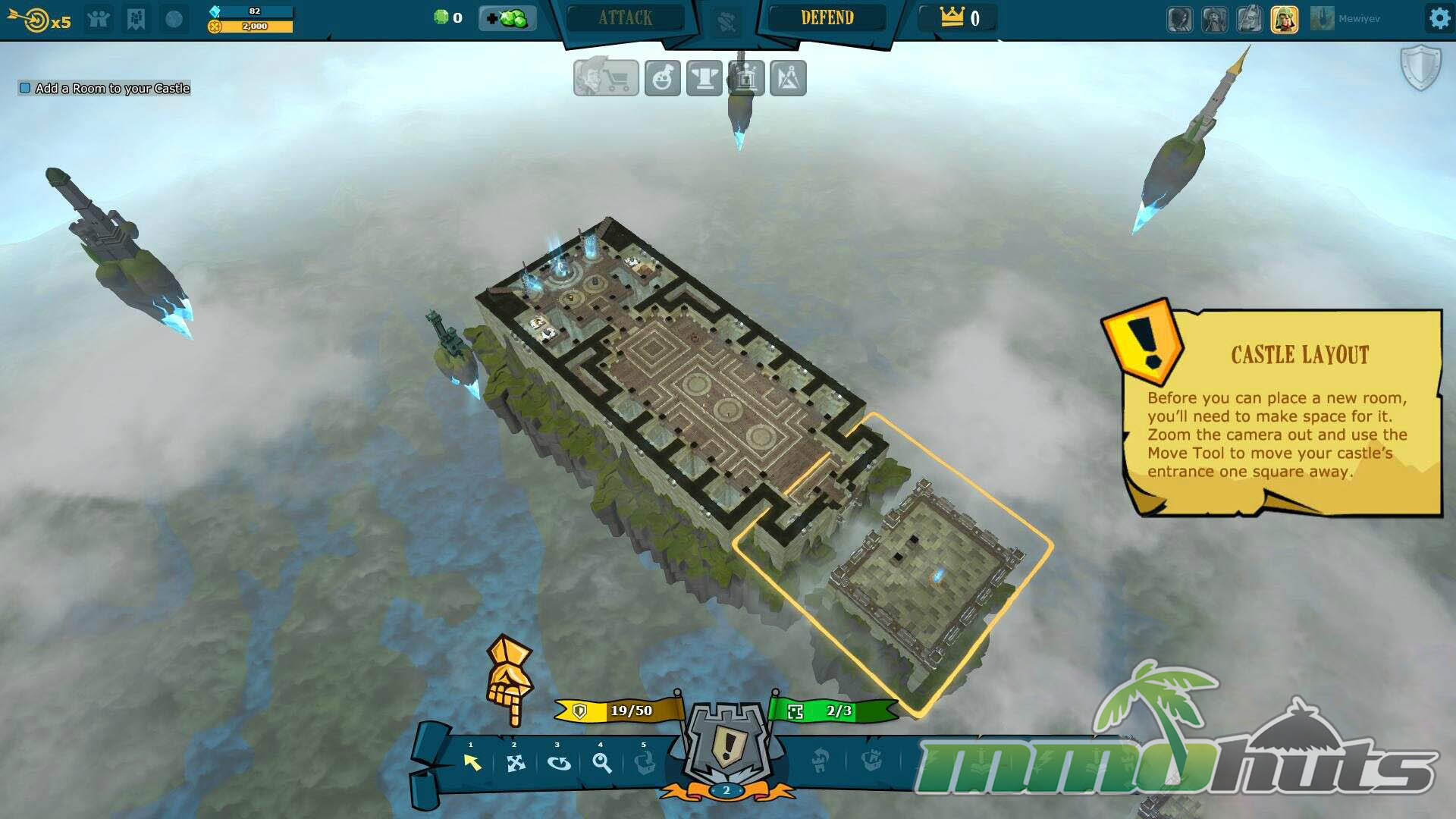 The tutorial does not overstay its welcome, and much of the learning happens naturally through the interface and repeated actions. After the introductory phase, the social layer becomes more visible through a global chat, and the game starts serving up a wider selection of player-created castles to raid. Success on these raids earns Crowns, which function as a PvP ladder currency tied to your standing.