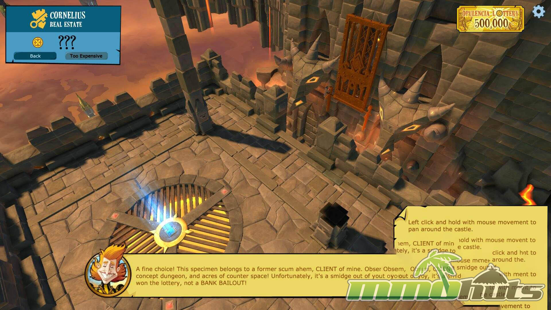 The opening sequence leans into the game’s comedic tone, then quickly hands control over to Cornelius Richling, who serves as your guide through the early steps. After that, you choose between three starter castle themes: Dusky, Foggy, and Evening. These options are largely cosmetic in feel, but they also determine which early creatures, traps, and barricades you can work with, which nudges your first layouts in different directions. Your new property starts out bare and unimpressive, and the early quest chain is essentially a structured checklist: place defenders, set traps, improve key pieces of the keep, and learn how the economy feeds back into growth.