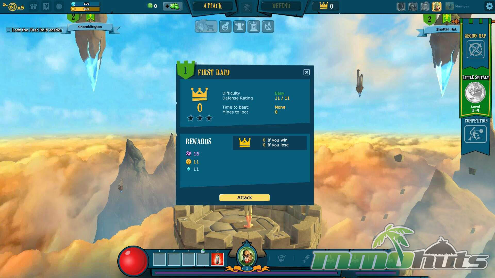 The tutorial does not overstay its welcome, and much of the learning happens naturally through the interface and repeated actions. After the introductory phase, the social layer becomes more visible through a global chat, and the game starts serving up a wider selection of player-created castles to raid. Success on these raids earns Crowns, which function as a PvP ladder currency tied to your standing.