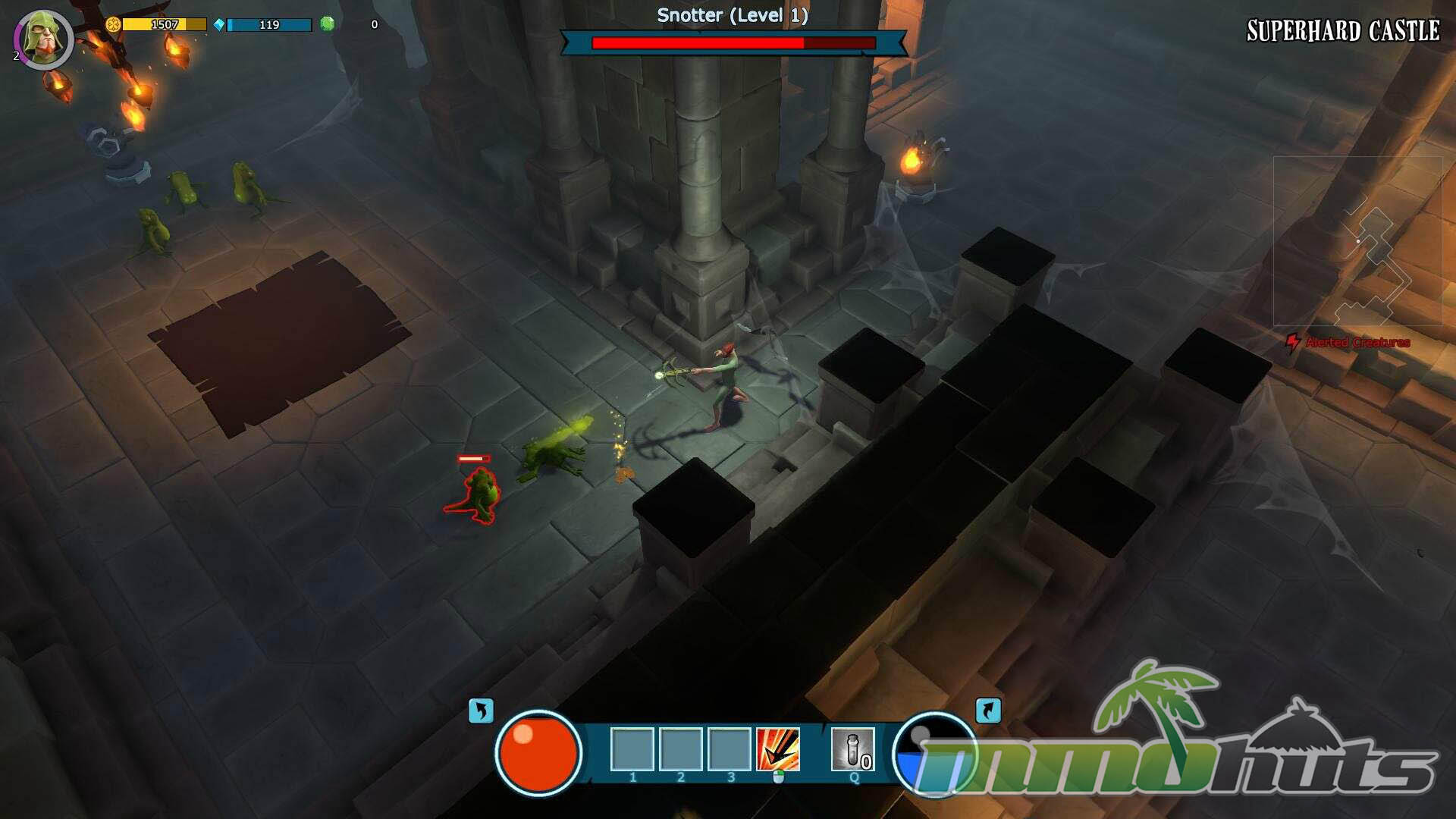 Heroes also develop through skill trees, but your active loadout is limited to four combat slots. That restriction forces real choices, you build toward mobility, survivability, burst damage, or utility depending on what kinds of castles you are targeting. Loot and currencies are scattered throughout dungeons and rewarded on completion, while premium currency is occasionally available through specific objectives, though it is not handed out frequently.