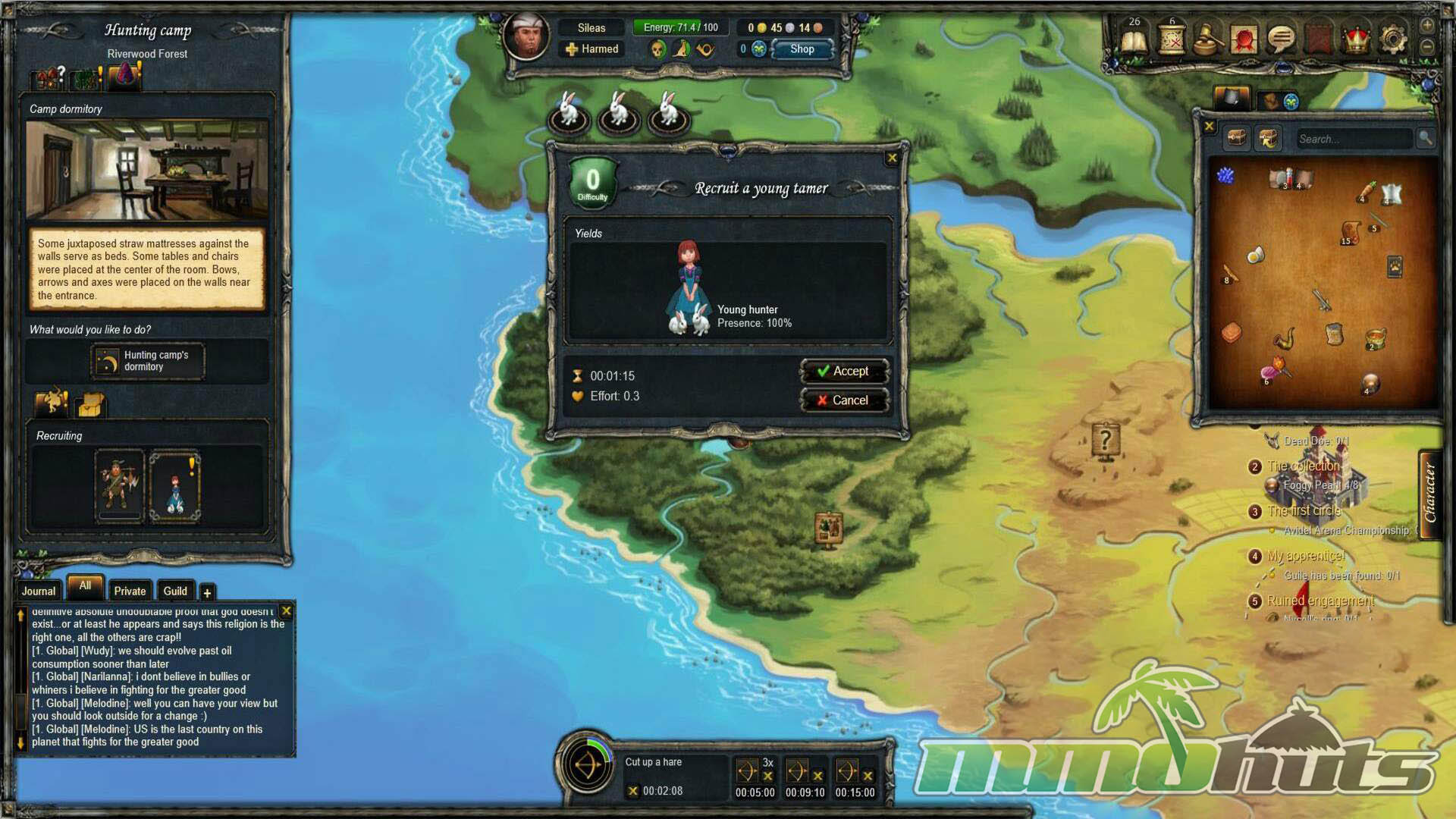 Therian Saga is a browser MMORPG built around sandbox progression, where your character improves through a wide mix of survival and trade skills, including exploration, hunting, farming, and crafting. Instead of constant manual grinding, much of your advancement comes from planning and scheduling actions, then letting time and preparation do the work.
