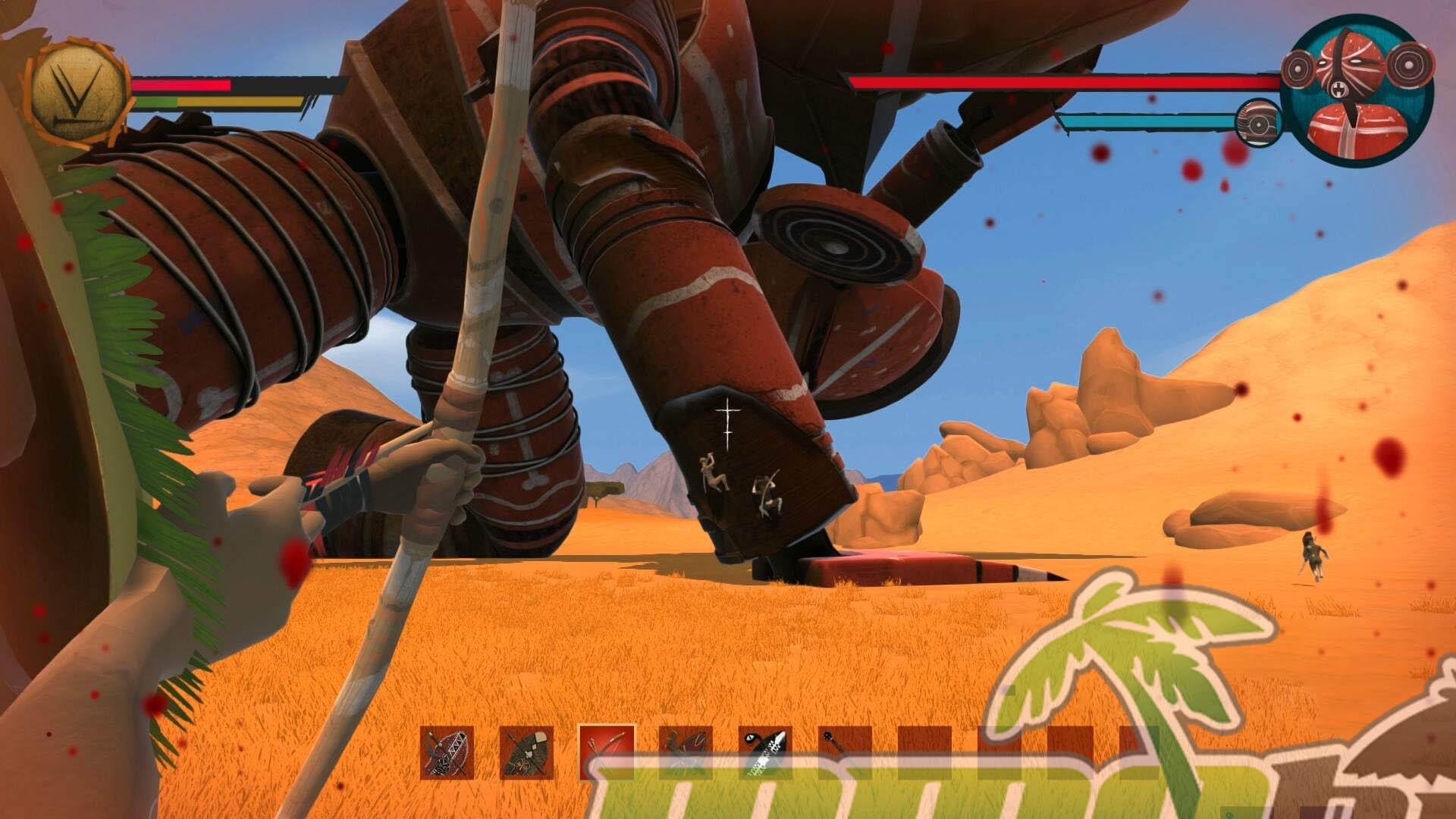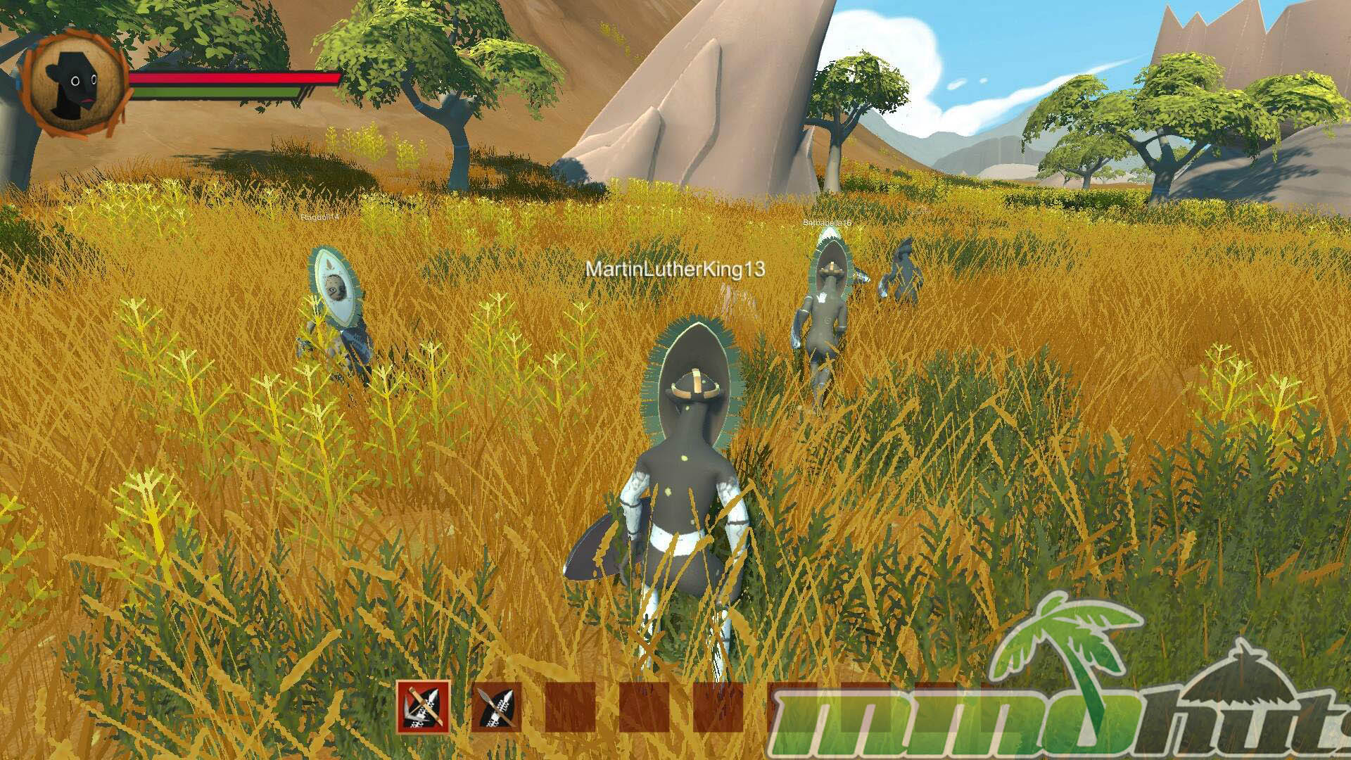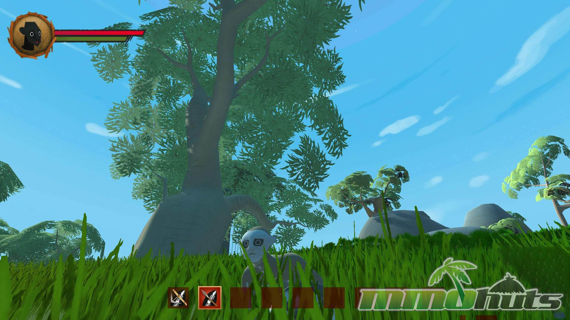 Exploration supports the survival framework with a broad open world split into distinct regions, including jungles and deserts, each with different wildlife and resources to pursue. Long-term goals also include tracking down ancient artifacts, the Hidden Treasures of Ubuntu, which provide unique powers and give explorers a reason to travel beyond the safety of their village.
