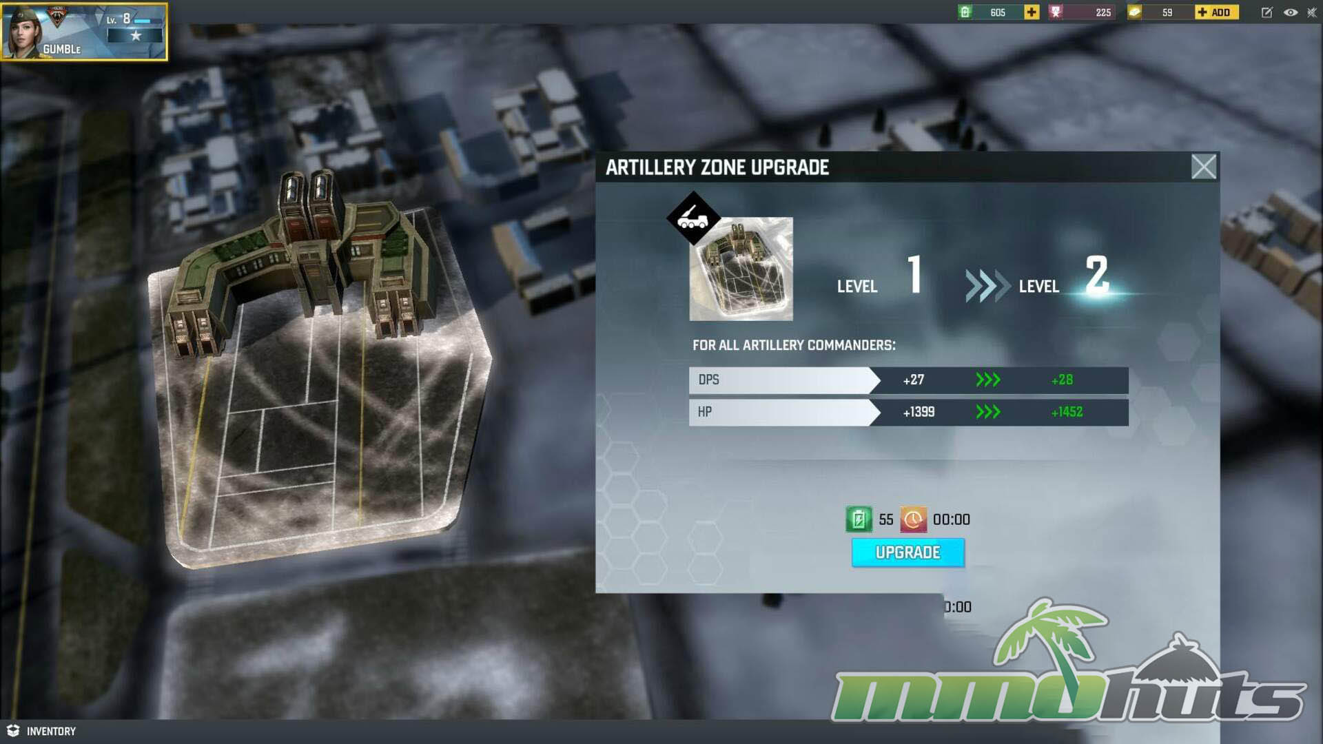- Base Building – construct and upgrade facilities (such as an Air Strike Zone) that improve unit DPS and health.