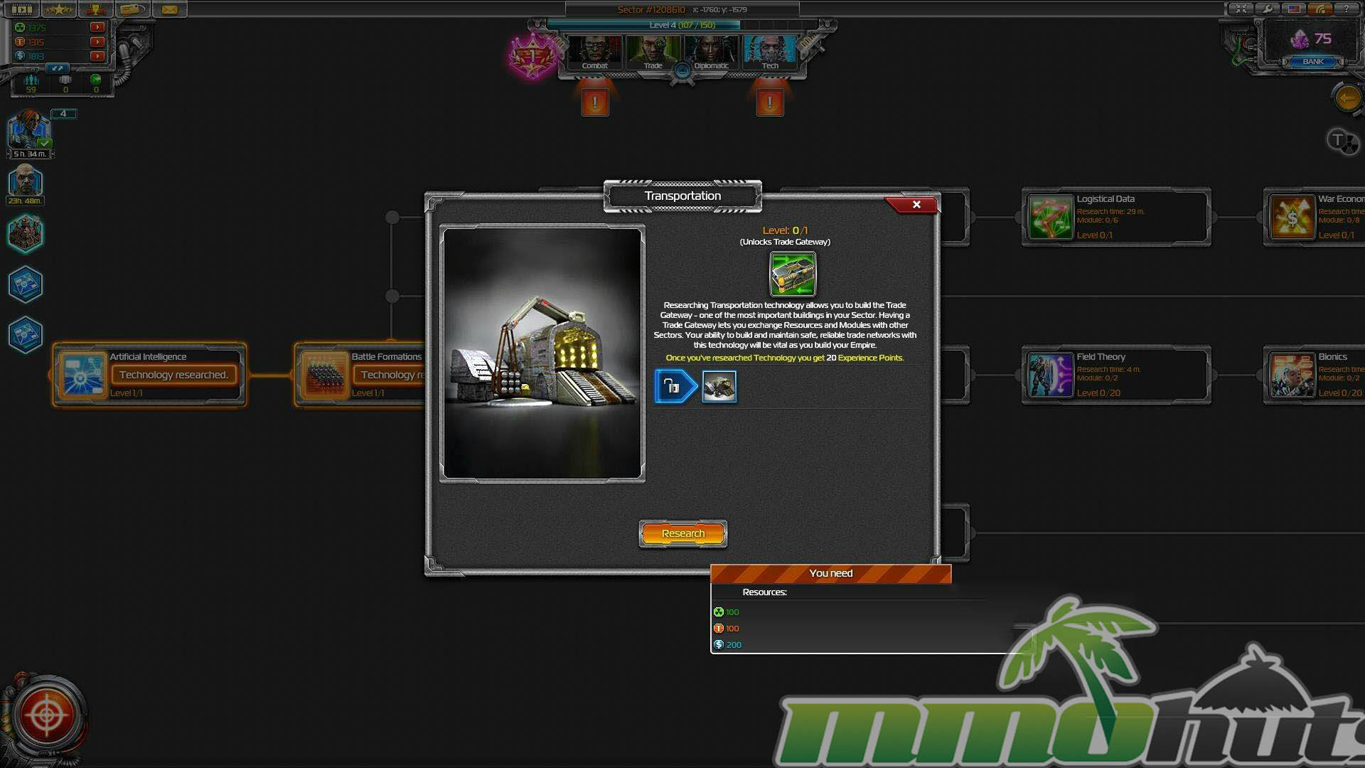 Once the Research Lab is online, you gain access to Technologies, a separate progression track that sits alongside Tech Nodes. Technologies cover the big-ticket upgrades: unlocking new unit types, improving existing troops, enabling combat bonuses, and opening up additional buildings. Research is paced by Modules, which you receive daily from the Tech Advisor. That daily drip feed encourages consistent logins, and the Black Market gives you a way to exchange Modules you do not need for ones that fit your current plan.