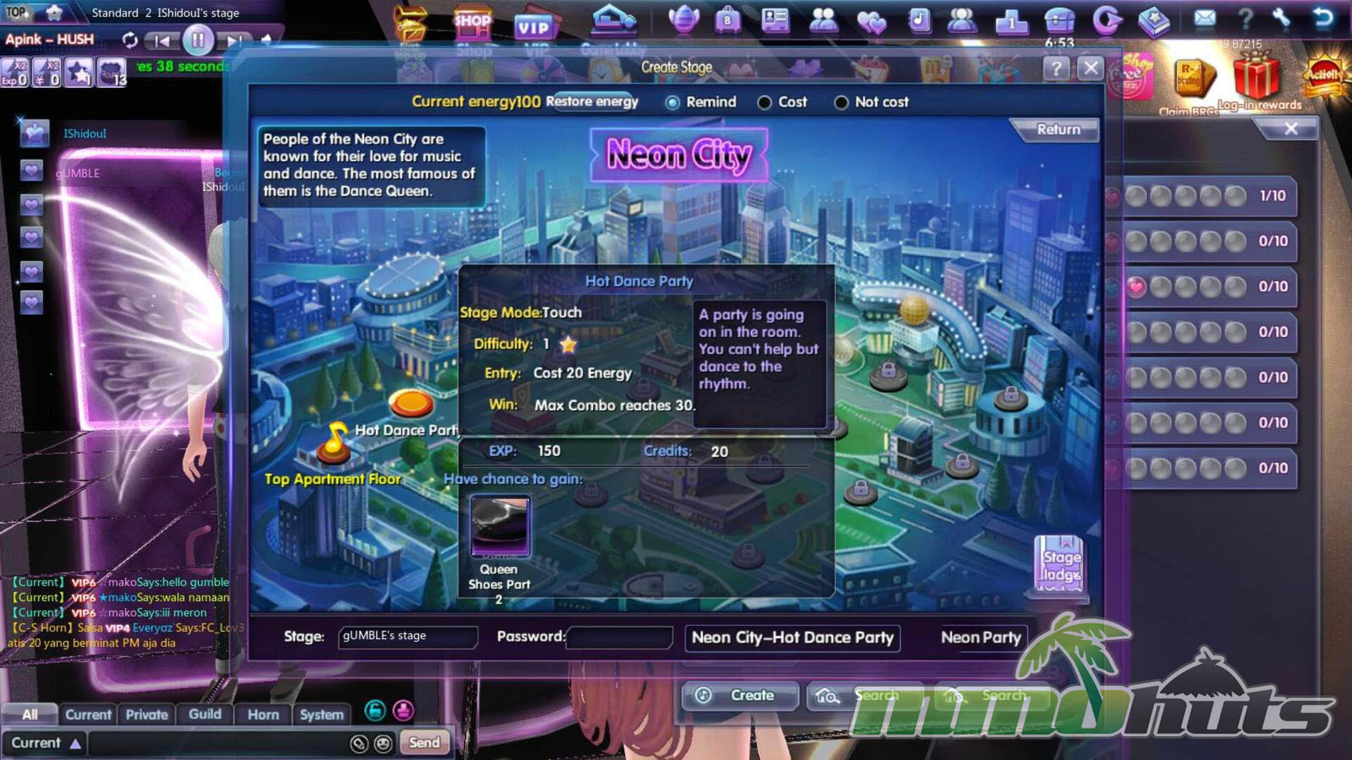 Progress is structured around clearing stage-like challenges tied to different areas, where objectives might ask you to reach a target score, keep a combo going, or meet other performance requirements. Clearing these tasks opens additional stages and helps you earn currency for cosmetic unlocks. Outside of the dancing itself, the game leans into community features with guilds, competitive ranking ladders, and even marriage mechanics that provide bonuses, all wrapped around an avatar system designed to encourage self-expression through outfits, hairstyles, and accessories.