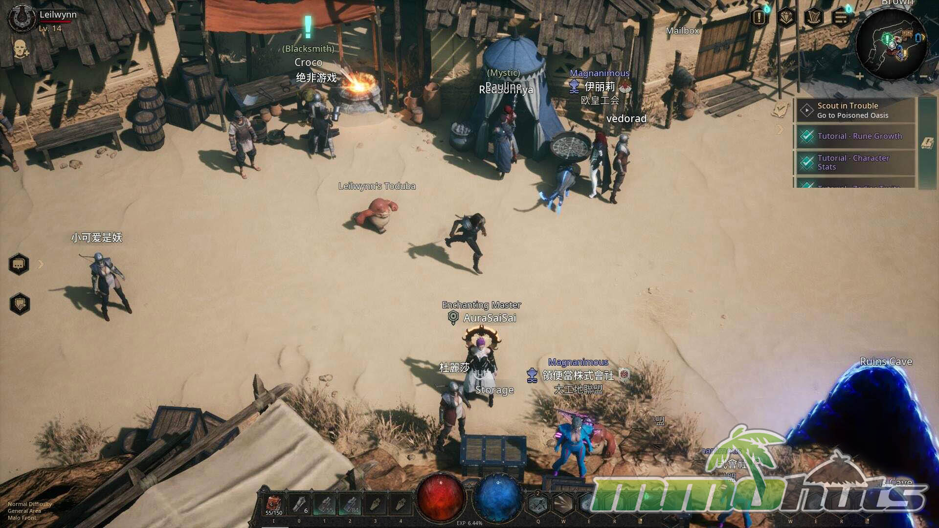 As you travel through Traum, you will cut through swarms of monsters, fight human enemies like bandits and cultists, and confront bosses designed to punish sloppy positioning. Along the way you can bring pets for support, queue with other players for dungeon runs, and work toward tougher encounters that demand coordination. Social systems are present too, guilds for longer-term groups and ranked arena PvP if you want to test builds against other Rune Hunters instead of AI.