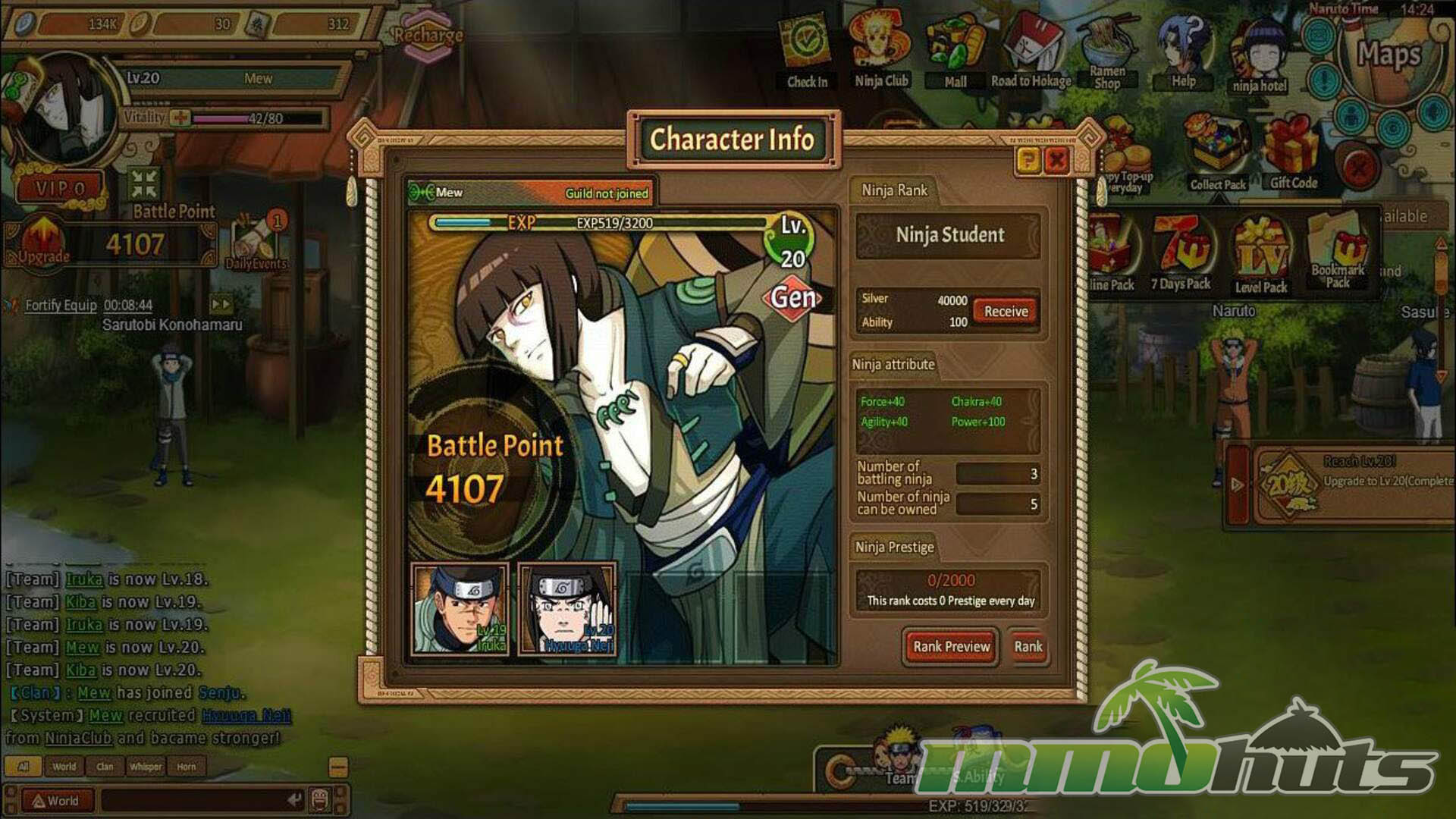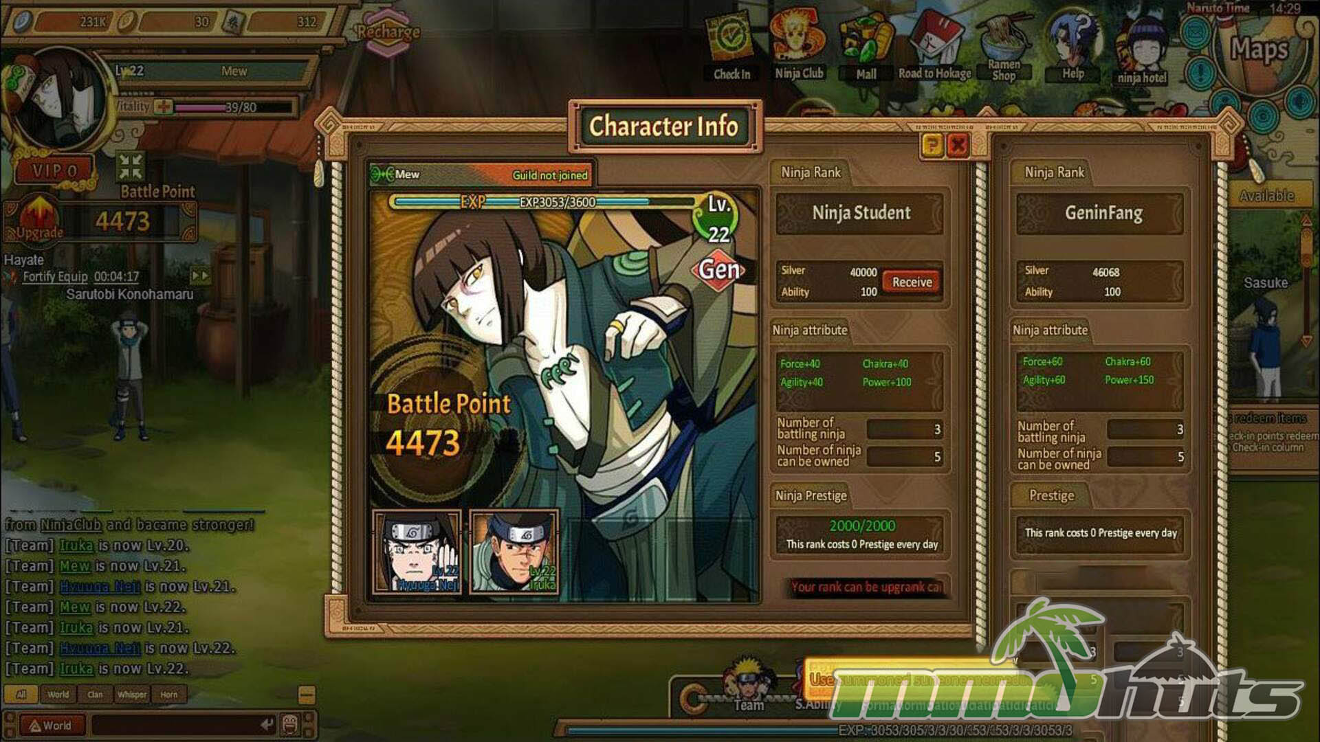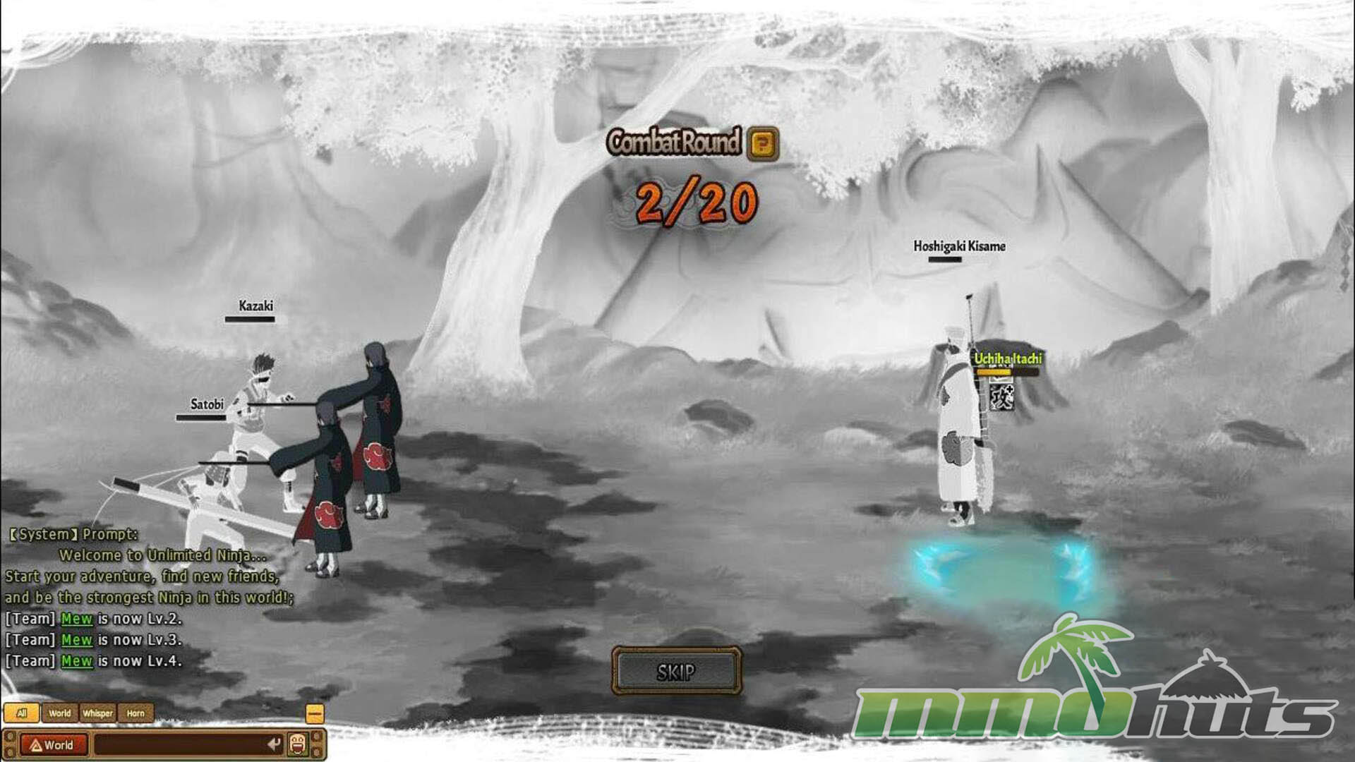 Unlimited Ninja Naruto (formerly known as Ultimate Naruto) is a browser MMORPG that loosely follows arcs and characters fans will recognize from Naruto. After a short setup, you create your character by picking one of three class paths, Genjutsu, Ninjutsu, or Taijutsu, each built around different stats and skill styles. Progression revolves around clearing objectives and encounters, then expanding your roster by recruiting well-known characters who bring their own abilities to your lineup. Those recruits can be arranged into party formations, turning the game into more of a squad-focused RPG than a solo brawler.