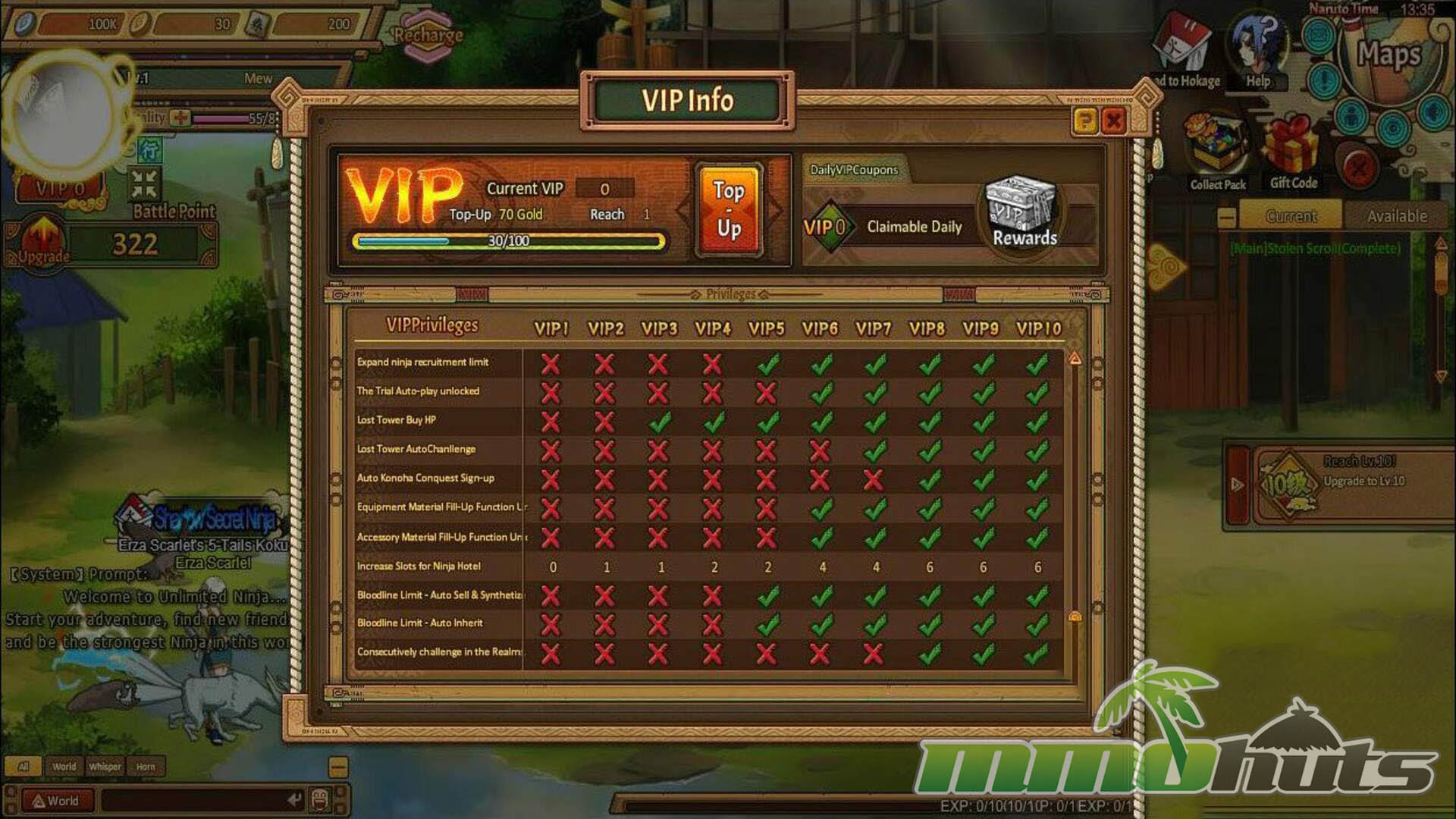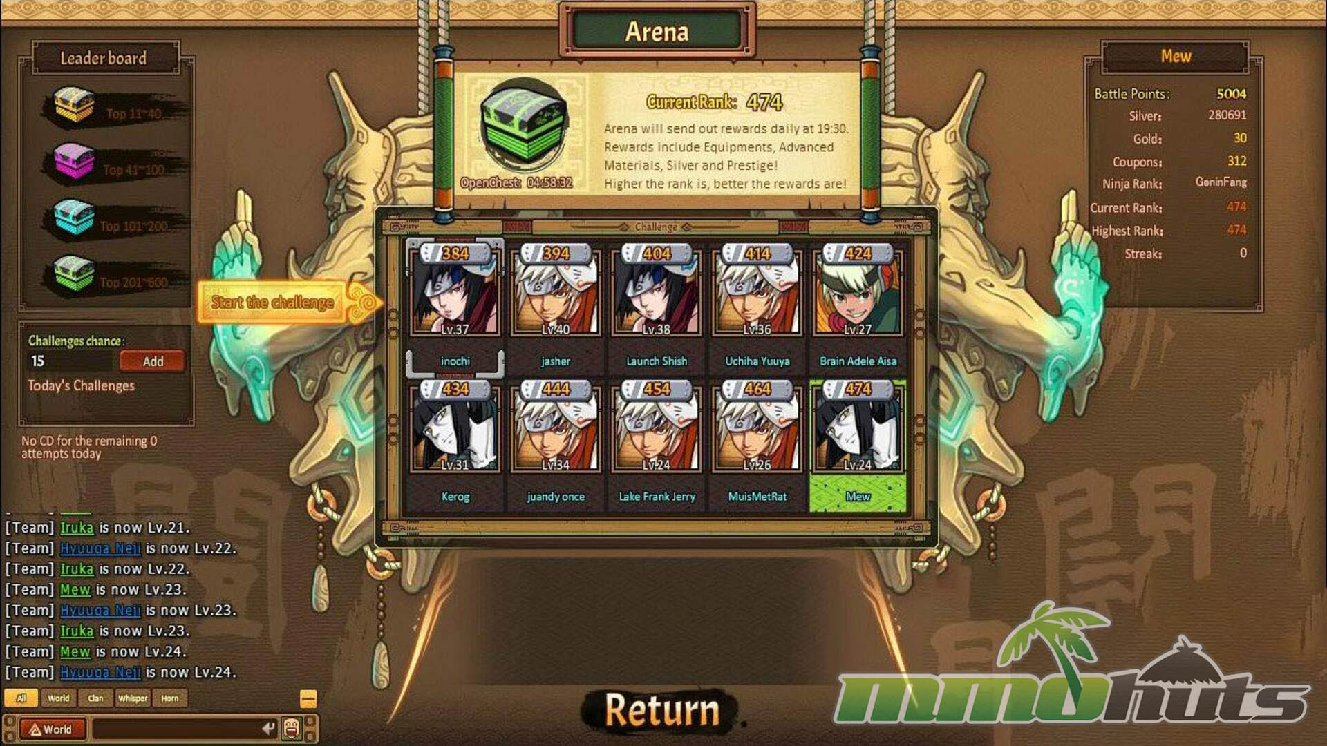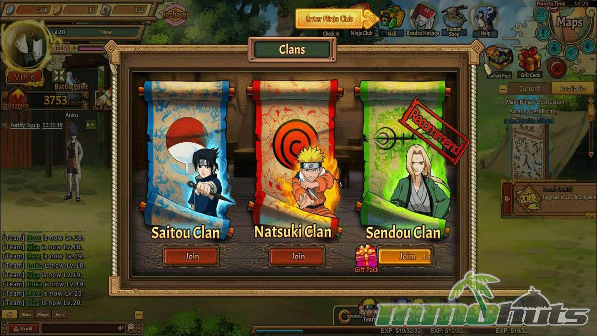 Unlimited Ninja Naruto (formerly known as Ultimate Naruto) is a browser MMORPG that loosely follows arcs and characters fans will recognize from Naruto. After a short setup, you create your character by picking one of three class paths, Genjutsu, Ninjutsu, or Taijutsu, each built around different stats and skill styles. Progression revolves around clearing objectives and encounters, then expanding your roster by recruiting well-known characters who bring their own abilities to your lineup. Those recruits can be arranged into party formations, turning the game into more of a squad-focused RPG than a solo brawler.