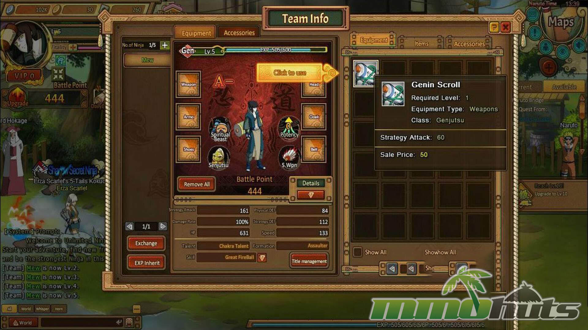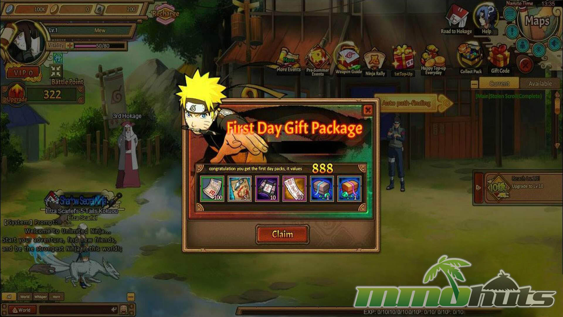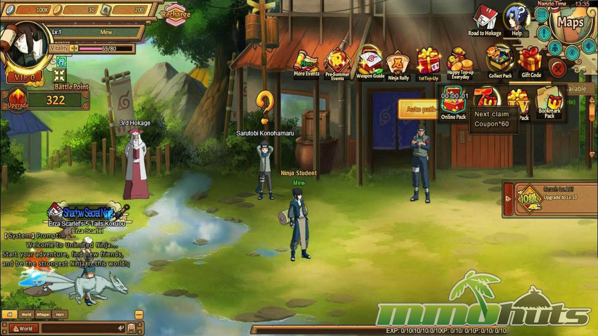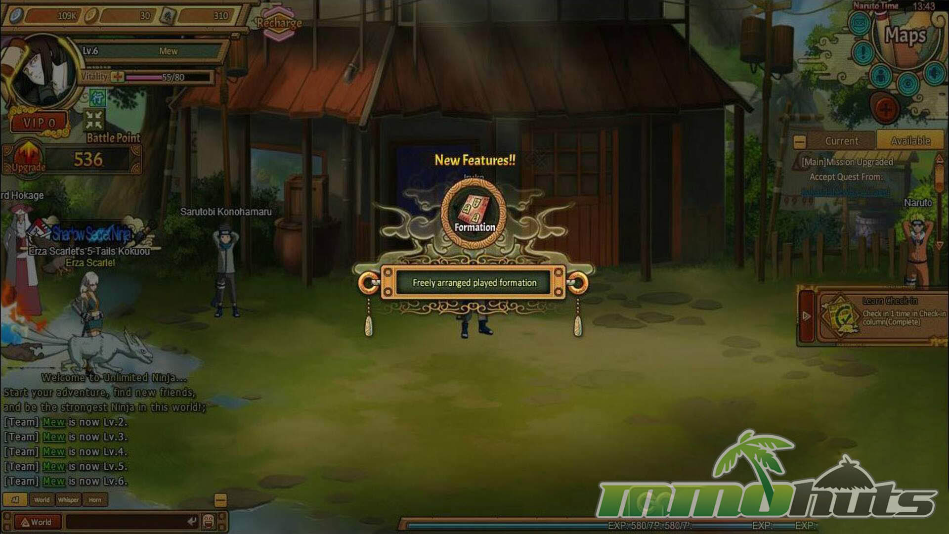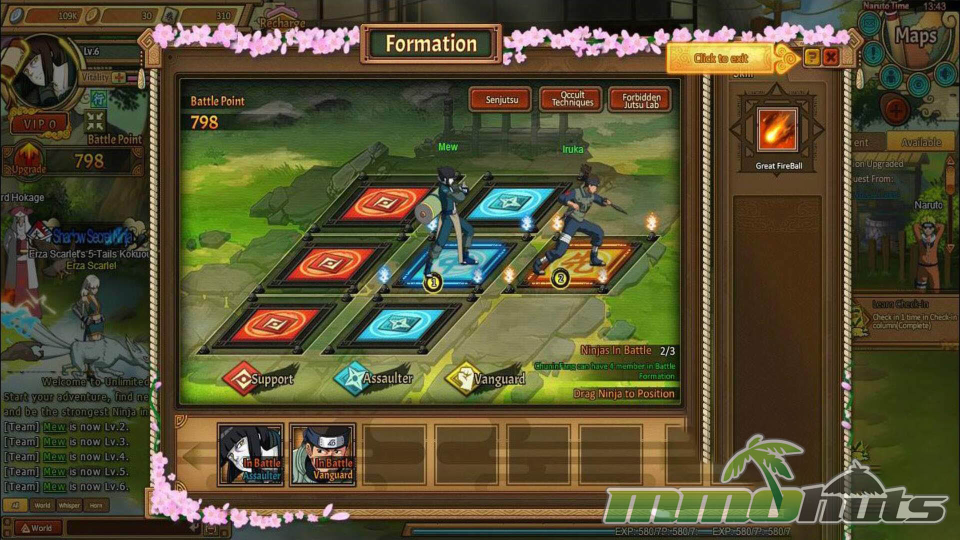 Unlimited Ninja Naruto (formerly known as Ultimate Naruto) is a browser MMORPG that loosely follows arcs and characters fans will recognize from Naruto. After a short setup, you create your character by picking one of three class paths, Genjutsu, Ninjutsu, or Taijutsu, each built around different stats and skill styles. Progression revolves around clearing objectives and encounters, then expanding your roster by recruiting well-known characters who bring their own abilities to your lineup. Those recruits can be arranged into party formations, turning the game into more of a squad-focused RPG than a solo brawler.