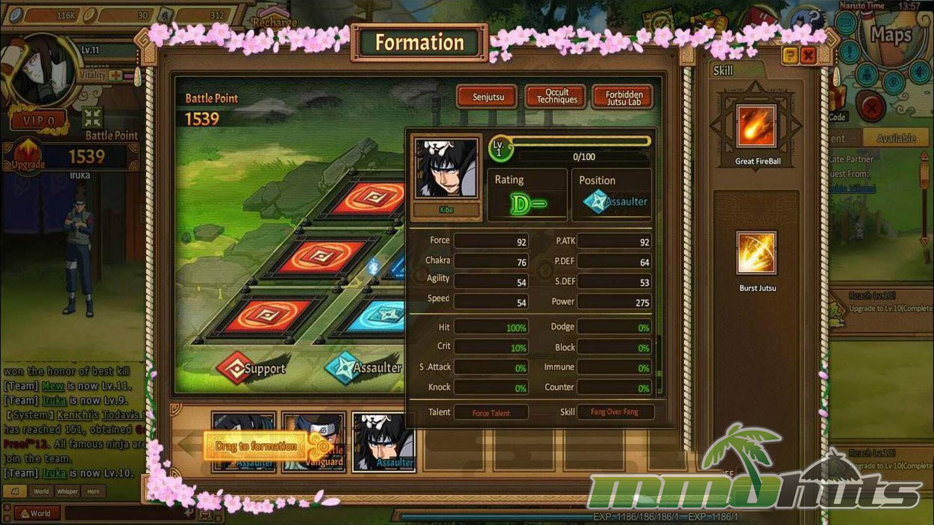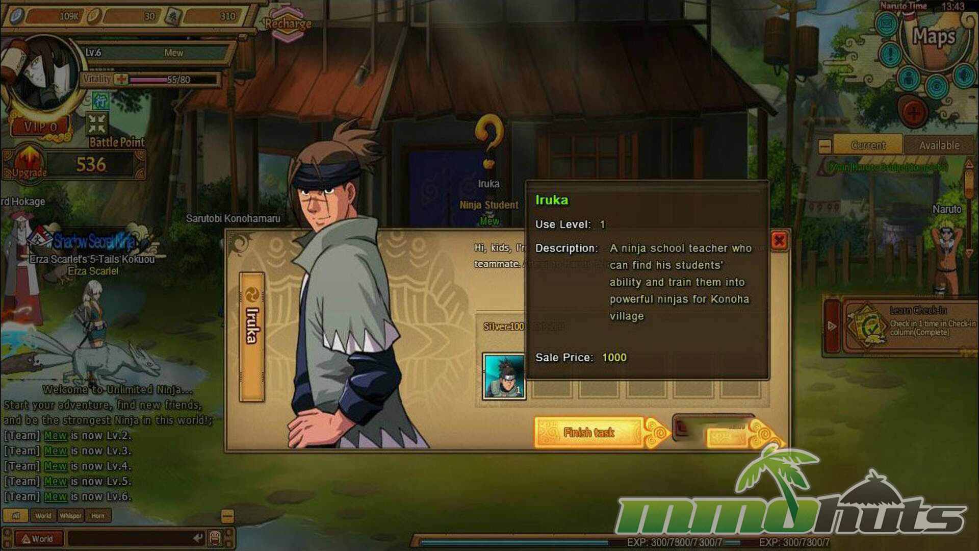 Unlimited Ninja Naruto (formerly known as Ultimate Naruto) is a browser MMORPG that loosely follows arcs and characters fans will recognize from Naruto. After a short setup, you create your character by picking one of three class paths, Genjutsu, Ninjutsu, or Taijutsu, each built around different stats and skill styles. Progression revolves around clearing objectives and encounters, then expanding your roster by recruiting well-known characters who bring their own abilities to your lineup. Those recruits can be arranged into party formations, turning the game into more of a squad-focused RPG than a solo brawler.