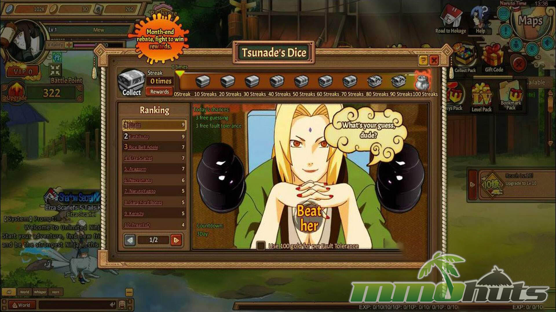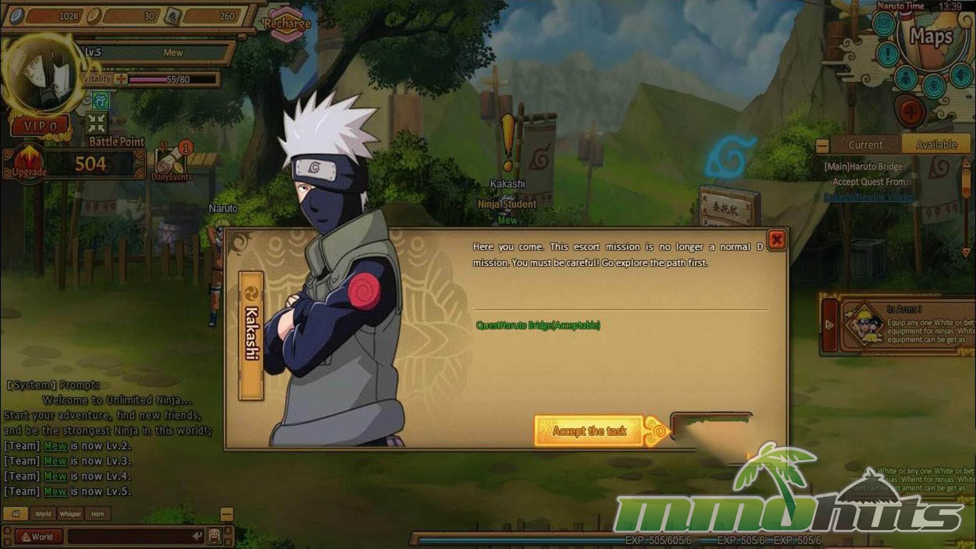 Unlimited Ninja Naruto (formerly known as Ultimate Naruto) is a browser MMORPG that loosely follows arcs and characters fans will recognize from Naruto. After a short setup, you create your character by picking one of three class paths, Genjutsu, Ninjutsu, or Taijutsu, each built around different stats and skill styles. Progression revolves around clearing objectives and encounters, then expanding your roster by recruiting well-known characters who bring their own abilities to your lineup. Those recruits can be arranged into party formations, turning the game into more of a squad-focused RPG than a solo brawler.
