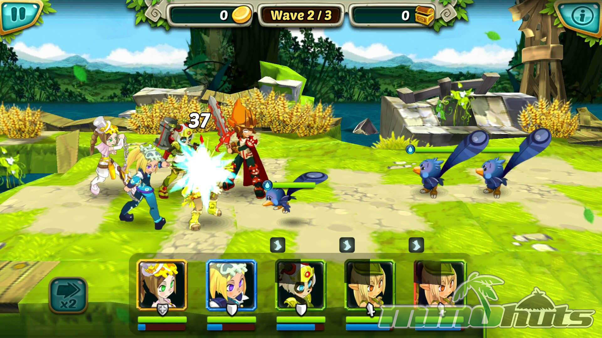 Wakfu Raiders is a 2D, hero-collection social RPG developed and published by gumi Inc., known for mobile hits like Brave Frontier and Chain Chronicle. Rather than recreating the PC MMORPG’s slower, grid-based tactics, this version reimagines the setting as a bite-sized, stage-to-stage adventure designed for quick sessions. You recruit a party from a pool of more than 30 Heroes, strengthen them through upgrades and evolution, and push through a campaign of 100+ stages featuring regular waves and occasional boss encounters.