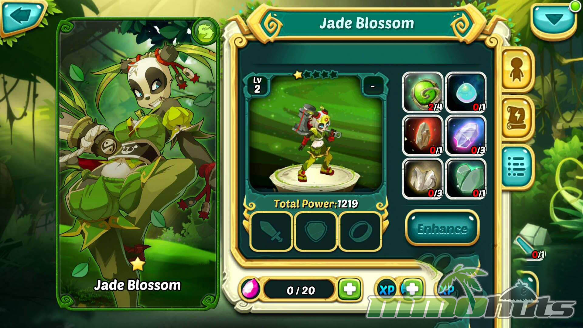 Progression follows the standard loop for the genre: Heroes gain experience from play, then you evolve them using specific material recipes obtained from targeted stages. Skills can be upgraded with gold, and equipment provides another layer of stat growth. Unlike some collection RPGs that let you add generic monsters to your team, Wakfu Raiders focuses on Heroes specifically. Acquisition is primarily through the Portal’s Summon options or by collecting enough Hero Soul Shards to unlock a given character. You can also earn shards, materials, gear, and Gems through normal play activities like quests, stages, and achievements.