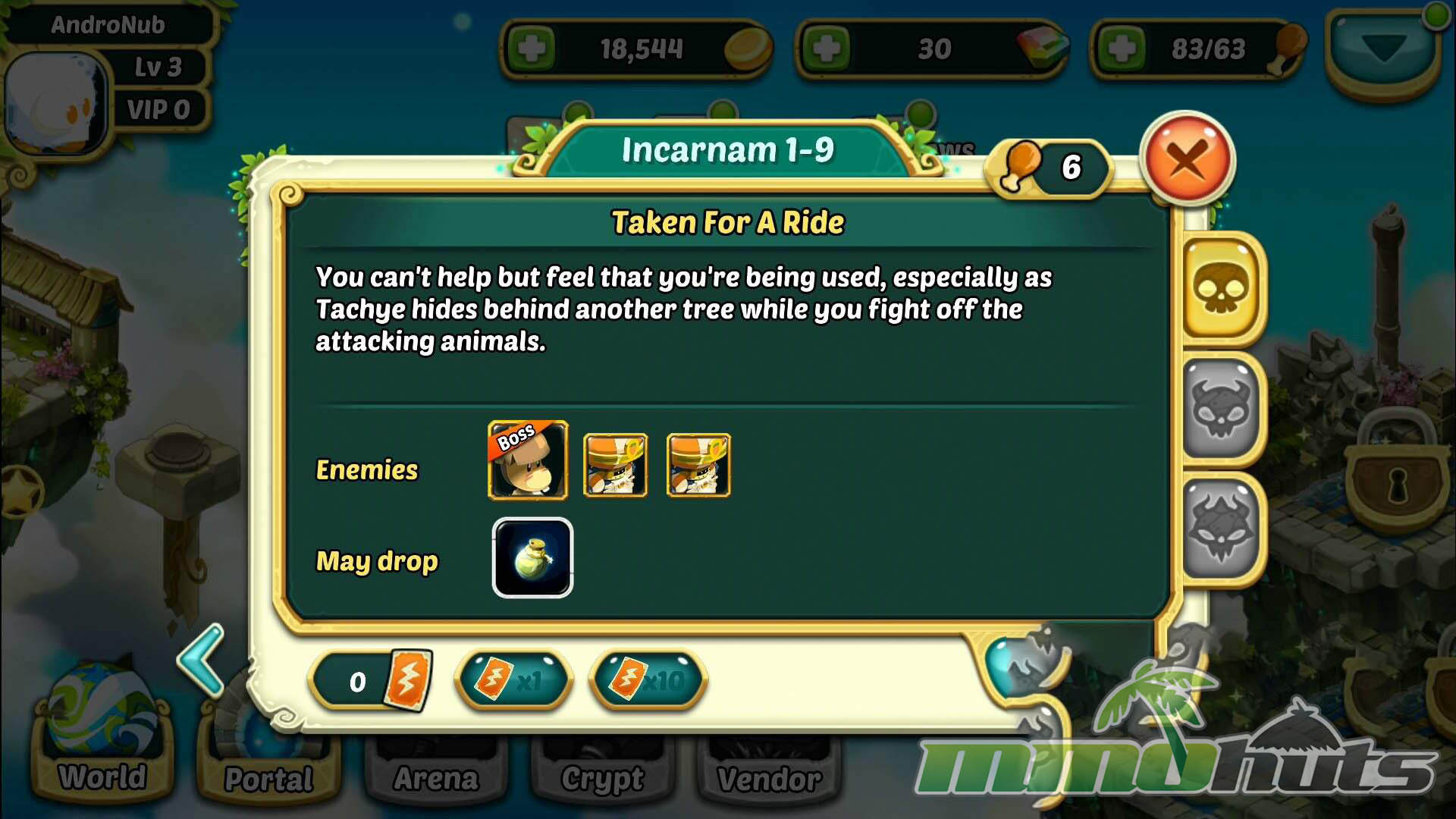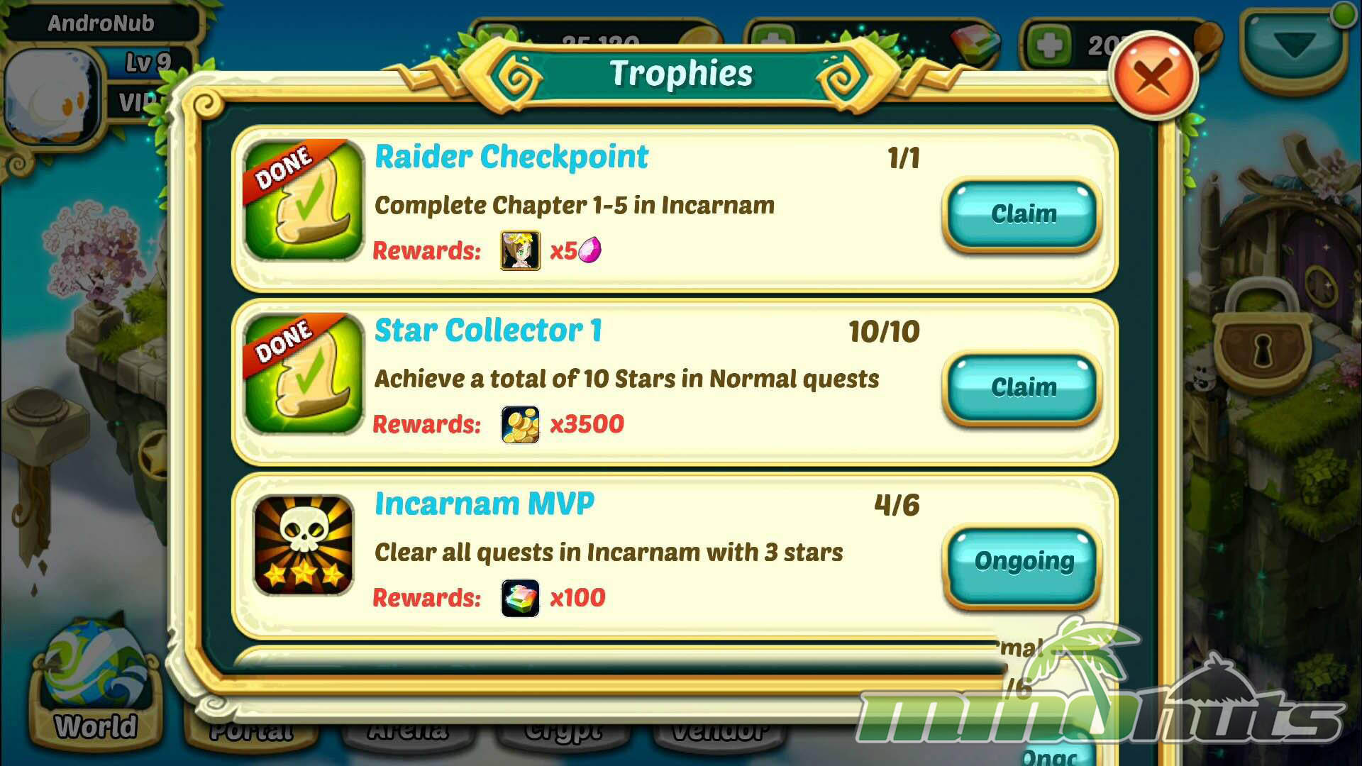 Progression follows the standard loop for the genre: Heroes gain experience from play, then you evolve them using specific material recipes obtained from targeted stages. Skills can be upgraded with gold, and equipment provides another layer of stat growth. Unlike some collection RPGs that let you add generic monsters to your team, Wakfu Raiders focuses on Heroes specifically. Acquisition is primarily through the Portal’s Summon options or by collecting enough Hero Soul Shards to unlock a given character. You can also earn shards, materials, gear, and Gems through normal play activities like quests, stages, and achievements.