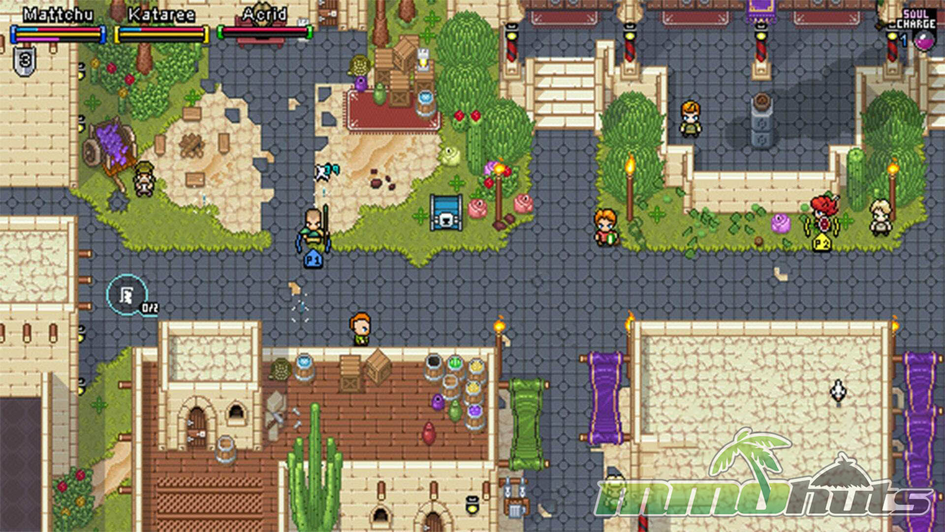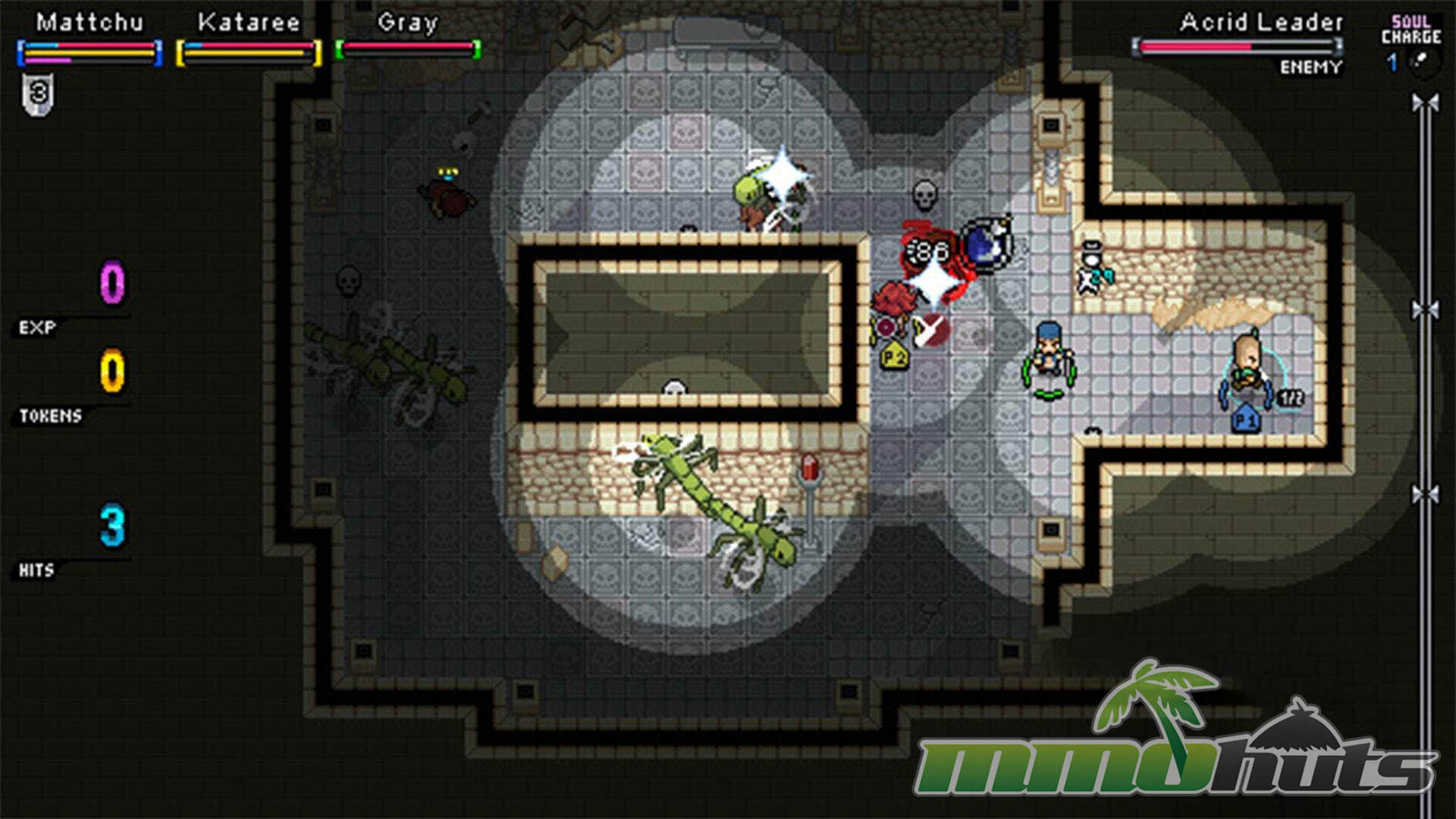 Soul Charges accumulate as you fight, up to a cap of three. They are used to interact with altars and to resurrect the party on the spot. Conceptually, it is a smart way to reward steady play and create a shared resource the group can manage.