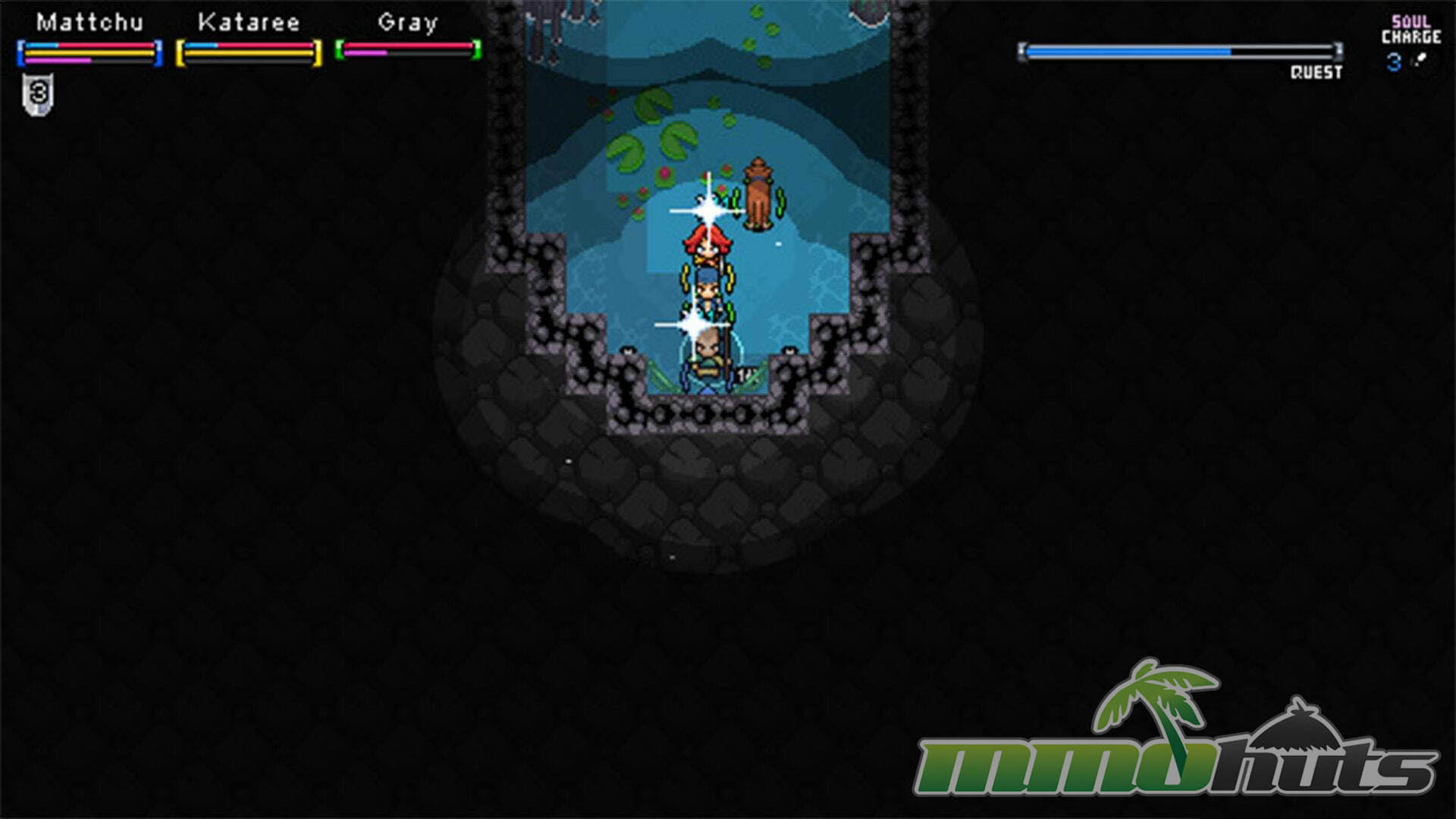 Soul Charges accumulate as you fight, up to a cap of three. They are used to interact with altars and to resurrect the party on the spot. Conceptually, it is a smart way to reward steady play and create a shared resource the group can manage.