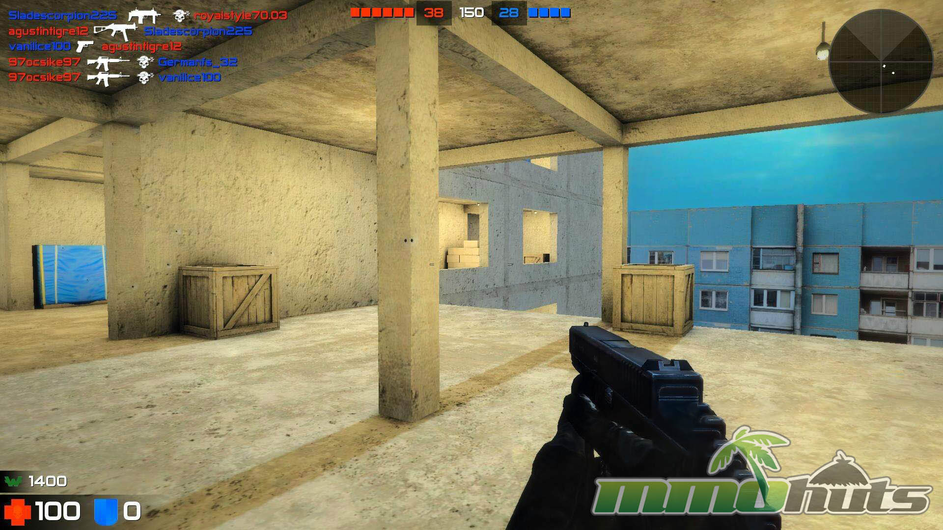 Warmode is focused almost entirely on Team Deathmatch. You join either the Terrorists or Counter-Terrorists and fight across compact maps built around a handful of lanes and intersections. With 16 players funneled into tight corridors, encounters happen constantly, often at point-blank distance, and weapons like shotguns stay relevant on nearly every layout.