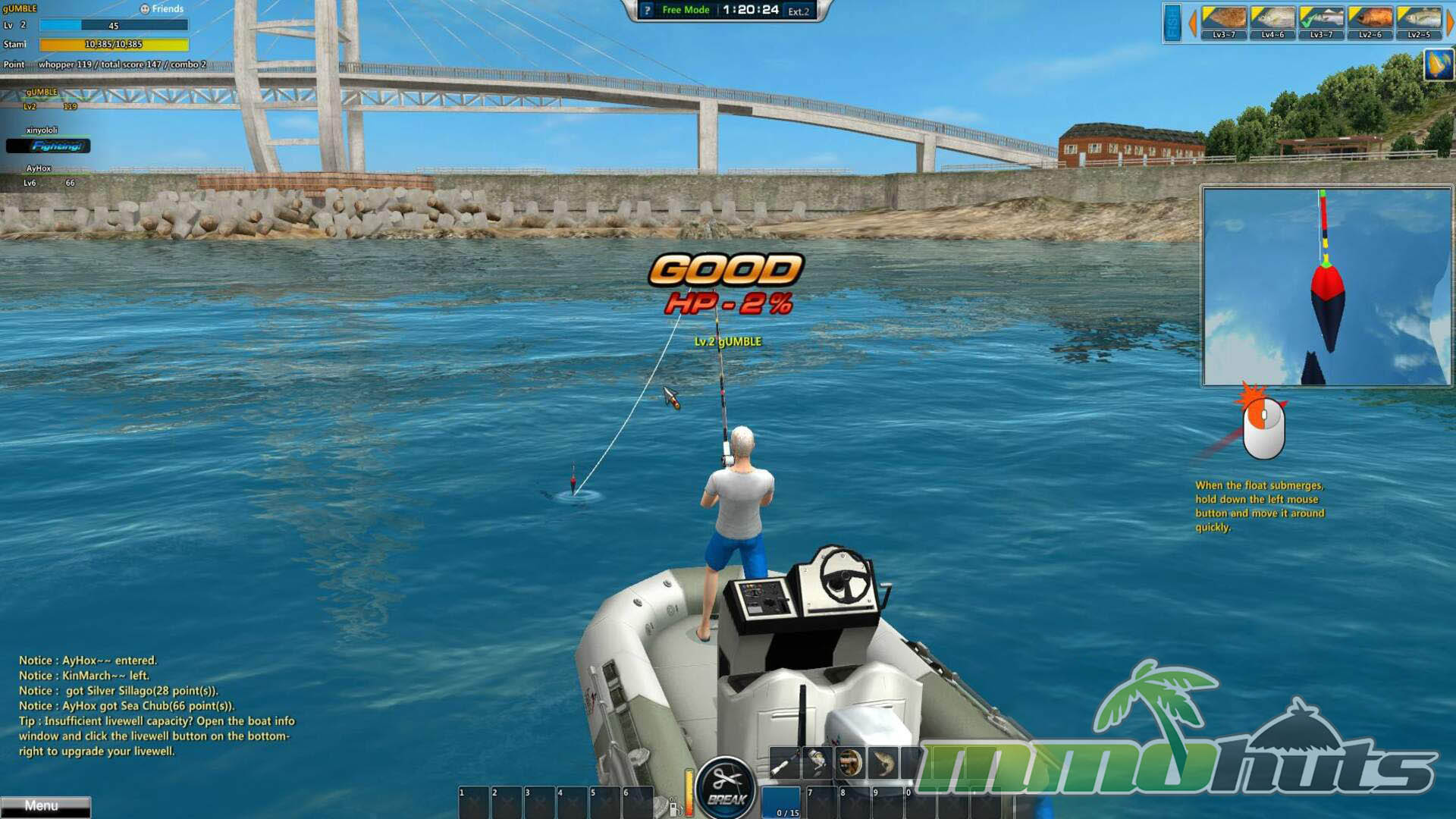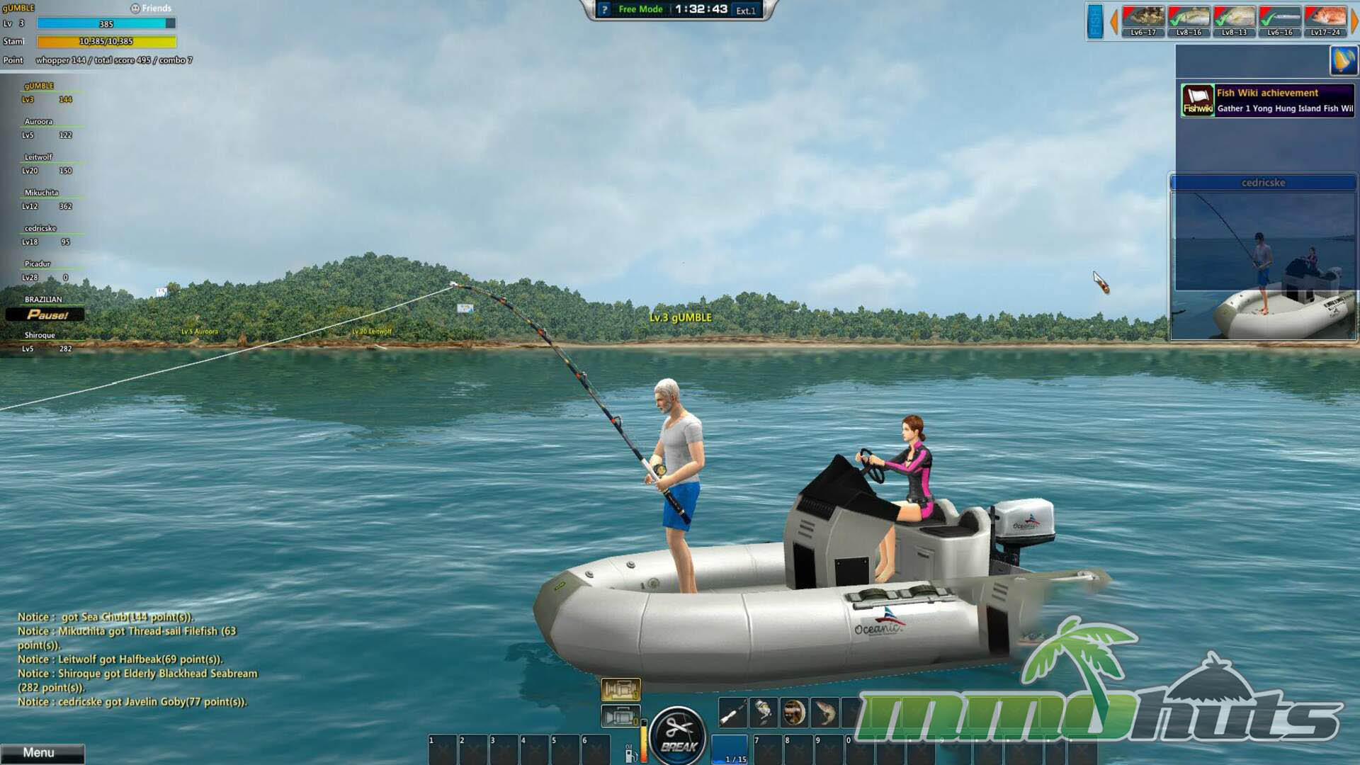 World of Fishing aims to capture the rhythm of real angling in an accessible MMO-style format. After setting up your character, you choose tackle and gear, then head out to scenic fishing spots modeled after recognizable destinations. The core loop is straightforward: cast, wait for a bite, then manage the struggle once something is hooked. Landing fish is not just a quick-time event, it is a small resource-management exercise where you balance line tension against the fish’s stamina to avoid snapping the line or losing the catch.