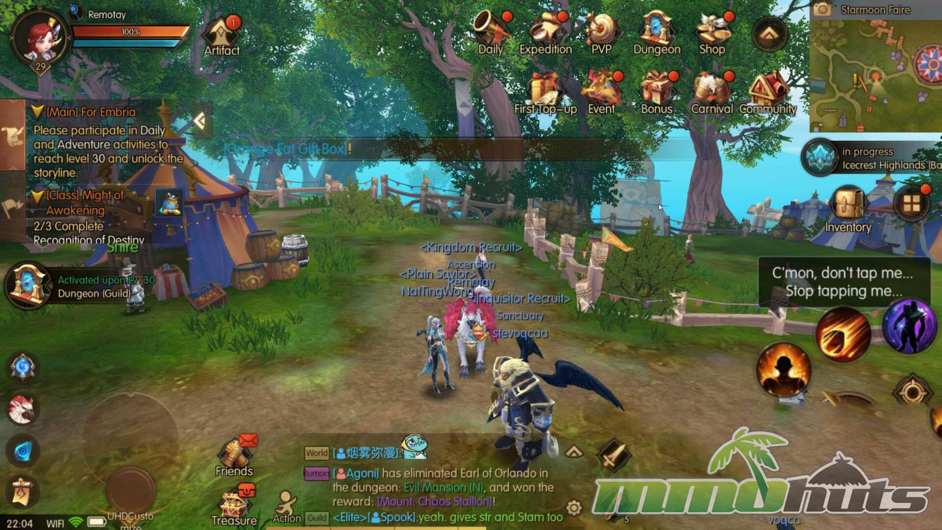A familiar MMO structure that works on a phone