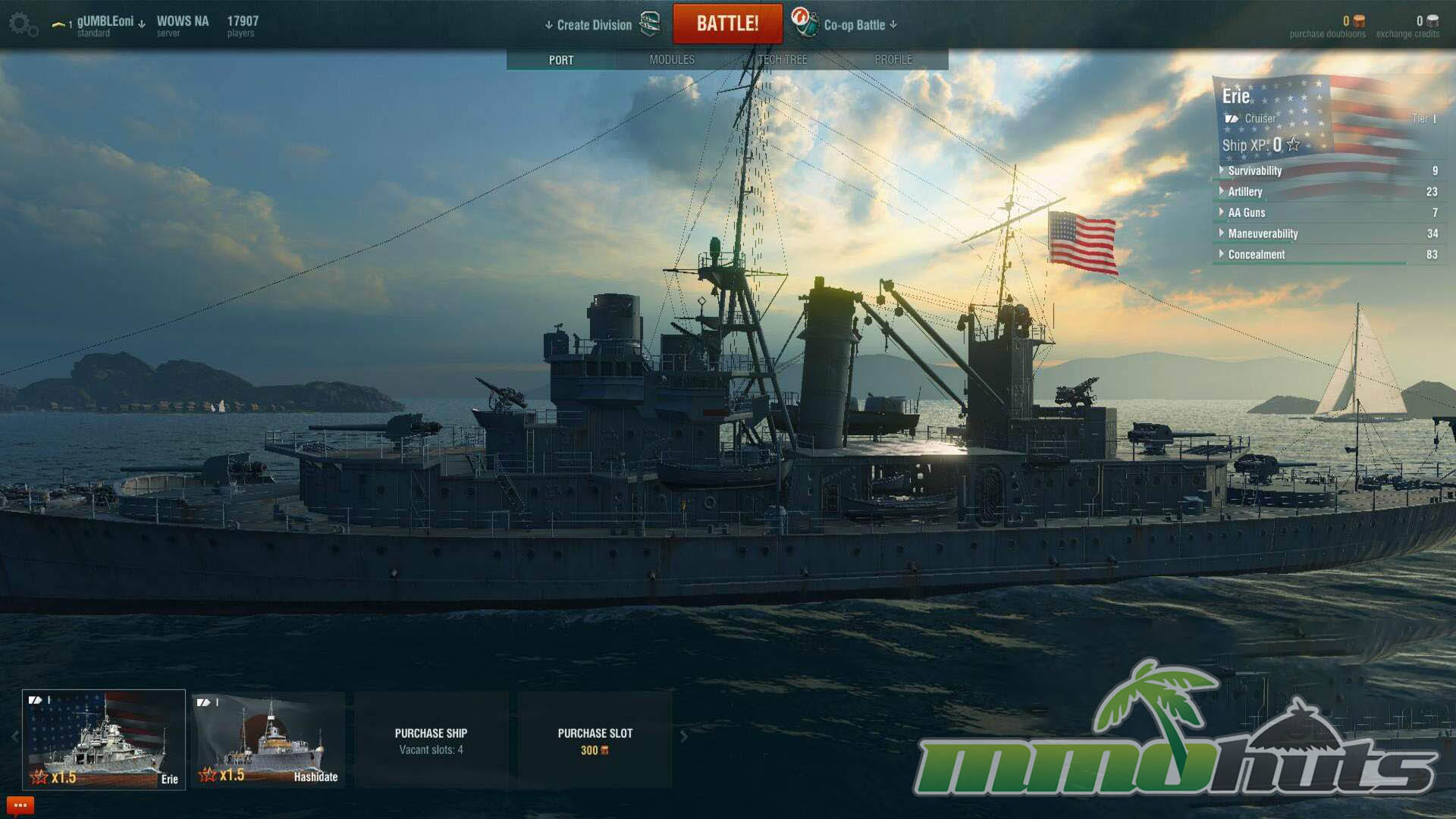 Progression is driven by a large tech tree featuring multiple ship types, including Aircraft carriers, Battleships, Cruisers, and Destroyers, plus premium options for players who want them. As you play, you earn experience to research new ships and upgrades, then purchase them using Exchange Credits earned through matches. Alternatively, you can use Dubloons, the game’s paid currency, to acquire ships or speed up certain choices depending on what you are targeting.