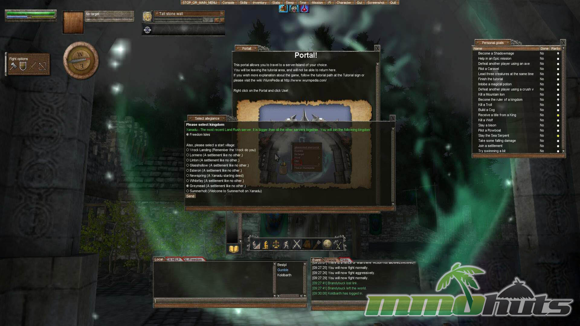 After the tutorial, you choose where to begin your real journey. Wurm Online is split across multiple servers, and they are not just “channels.” Each server has its own geography and history, shaped by the communities living there. Some servers focus on PvE, while others support PvP and kingdom conflict as a normal part of the experience.