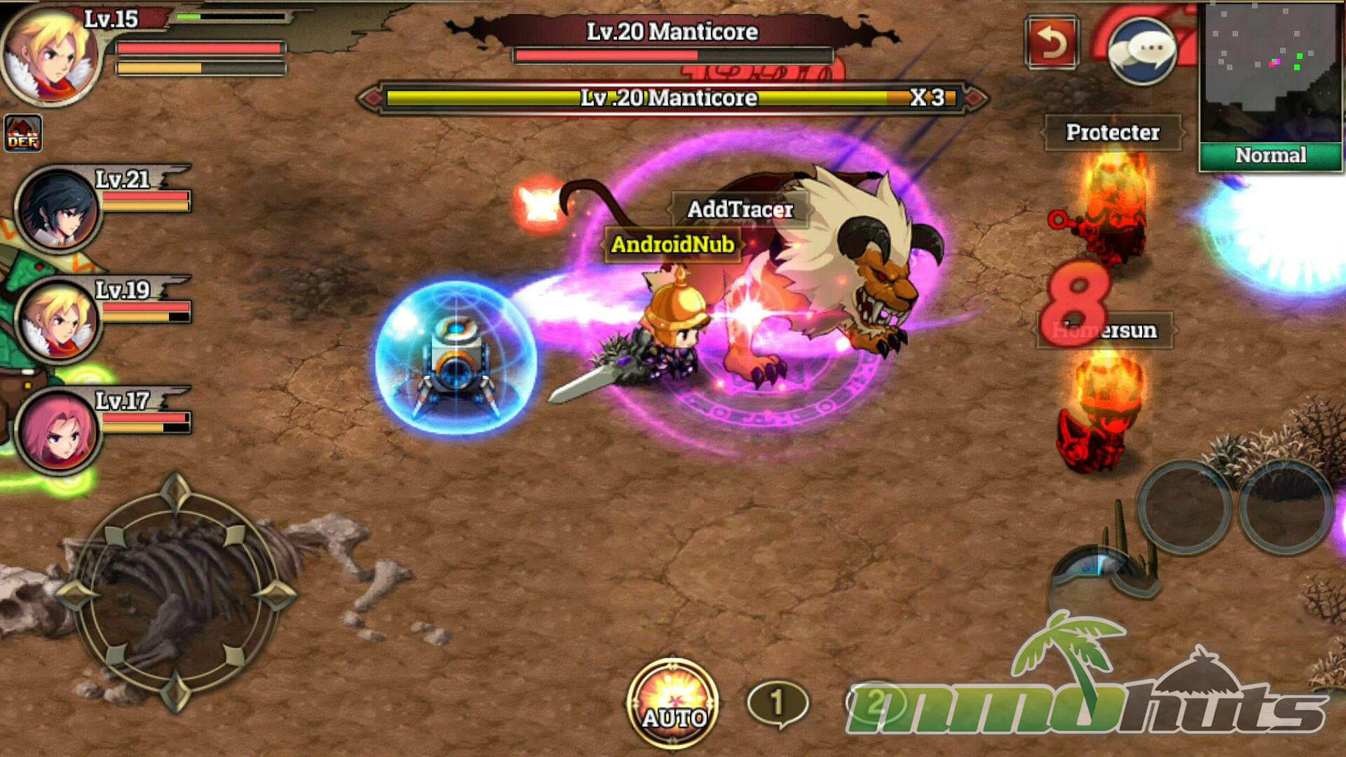 Combat is presented from an overhead perspective with a virtual joystick for movement and a primary attack button that can be tapped or held. Skills are mapped to buttons as well, and using them efficiently matters because mana is limited and does not naturally regenerate. Movement has an extra layer of responsiveness thanks to a dash activated by double-tapping a direction, and because there is no cooldown, it becomes a core tool for dodging and repositioning.