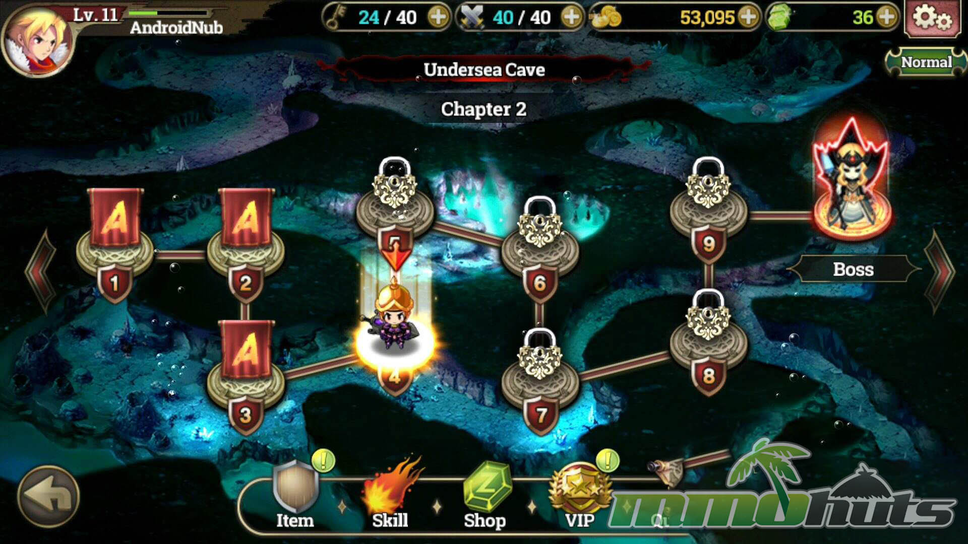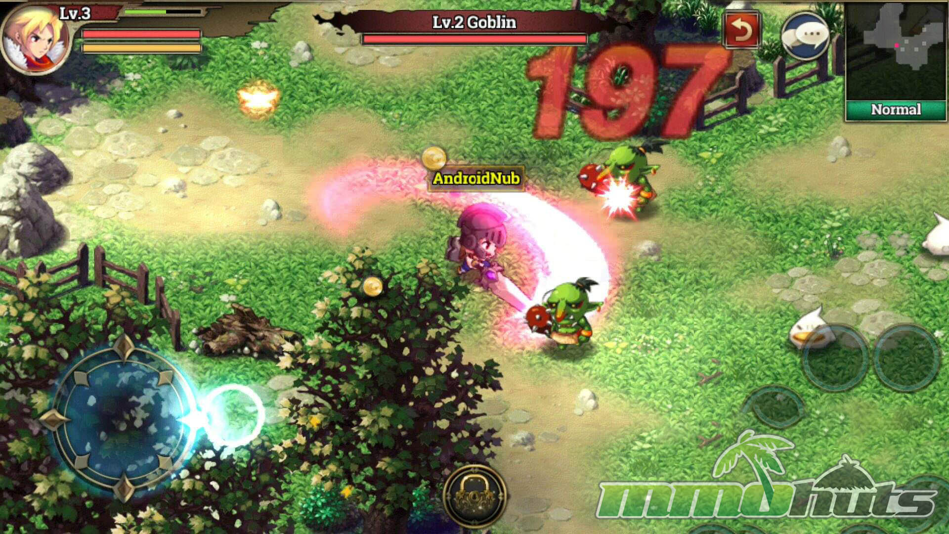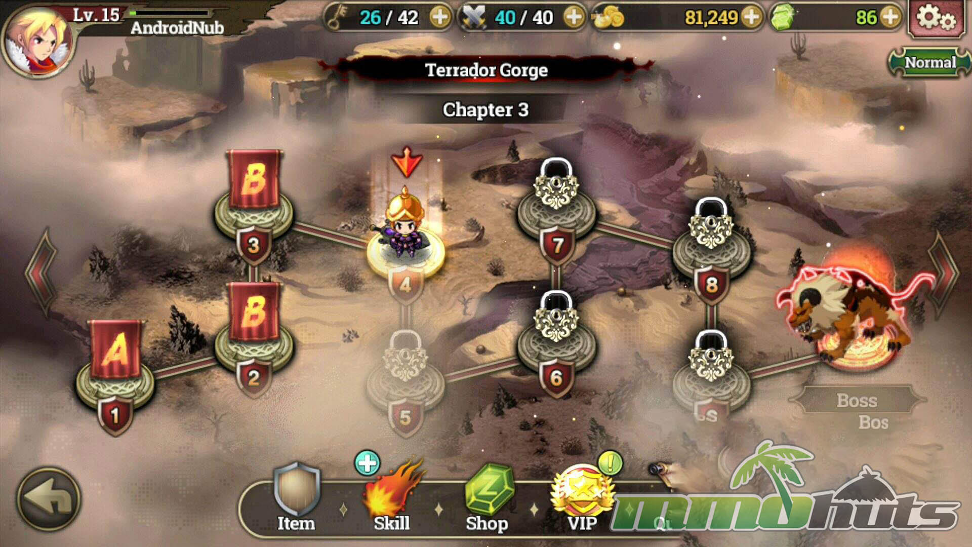 The biggest structural change is the shift to a stage map rather than a more continuous world. Zenonia S uses a hub town as a social space where you can move around, manage menus, and see other players, but most of the actual gameplay happens inside instanced stages. Those stages are generally solo-only for the main campaign, which is a notable limitation for a game marketed around being online. Seeing other players in town does not translate into co-op progression through the story, and that makes the online layer feel narrower than it could have been.