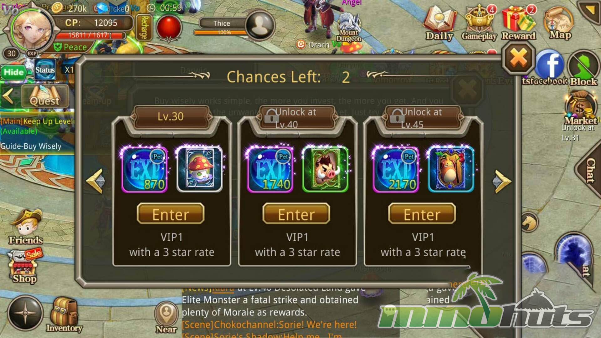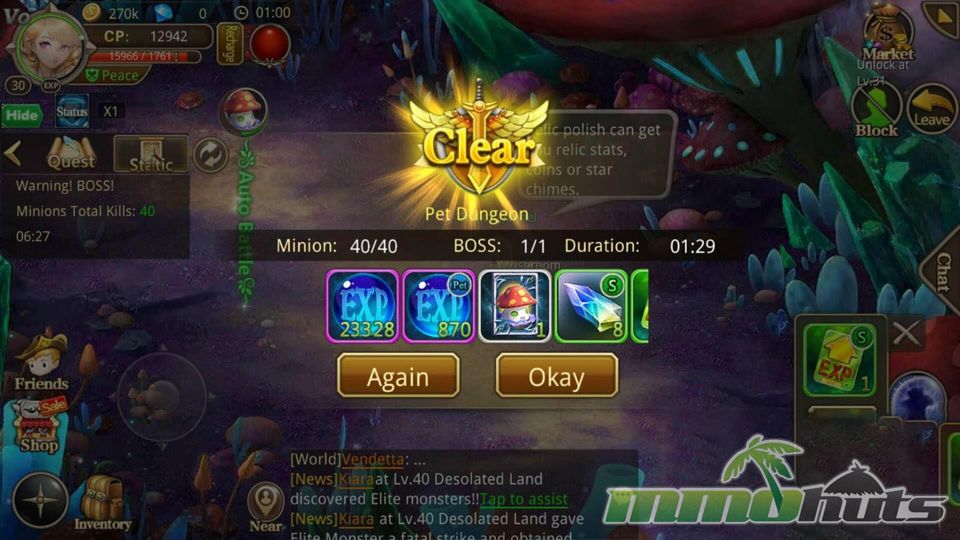 Dungeons are where Zeon puts most of its variety. As you level, you gain access to different instances aimed at specific rewards, including currency-focused runs like the Gold Dungeon (Level 40), competitive content such as the Royal War 1v1 PvP dungeon (Level 39), and pet-oriented farming in areas like Beast Island (Level 41). These activities encourage repeated runs for drops and materials, which ties directly into the game’s equipment and companion progression.