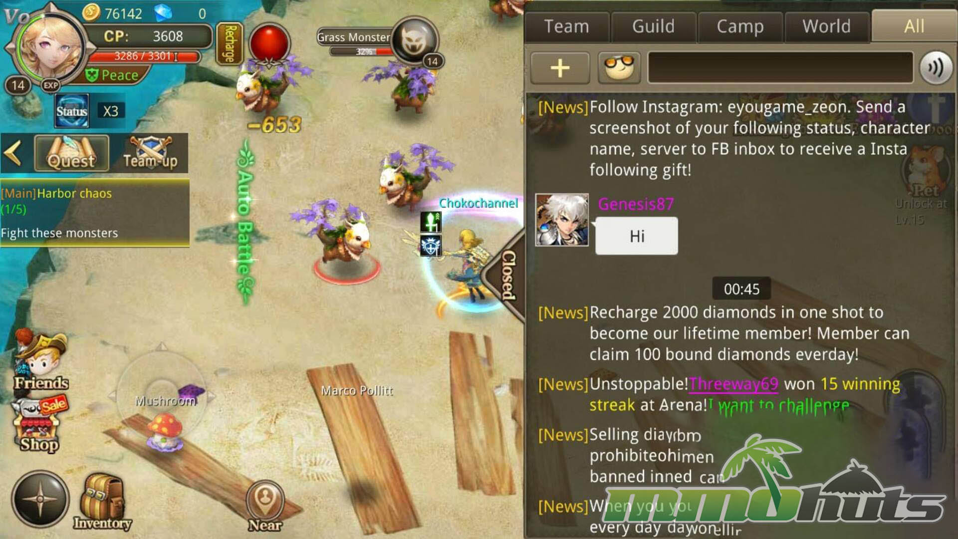 Zeon casts you as a hero in a world threatened by the Lord of Sins, with the core loop focused on leveling quickly, unlocking new activities, and grinding instanced content for upgrades. At character creation you choose one of four gender-locked classes, Wizard, GunSlinger, Boxer, or Swordsman, and later commit to one of two job upgrades per class. Those advancement choices steer your skill tree and combat style, giving each class at least a bit of build identity even within a fairly streamlined mobile MMO structure.